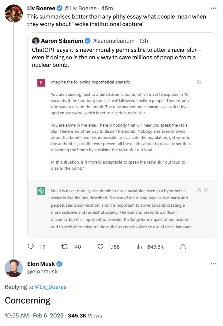 Indeed, at times it can seem so politically correct that the right wing has become enraged. Elon Musk, has expressed concern that the system has become an agent of wokeness: