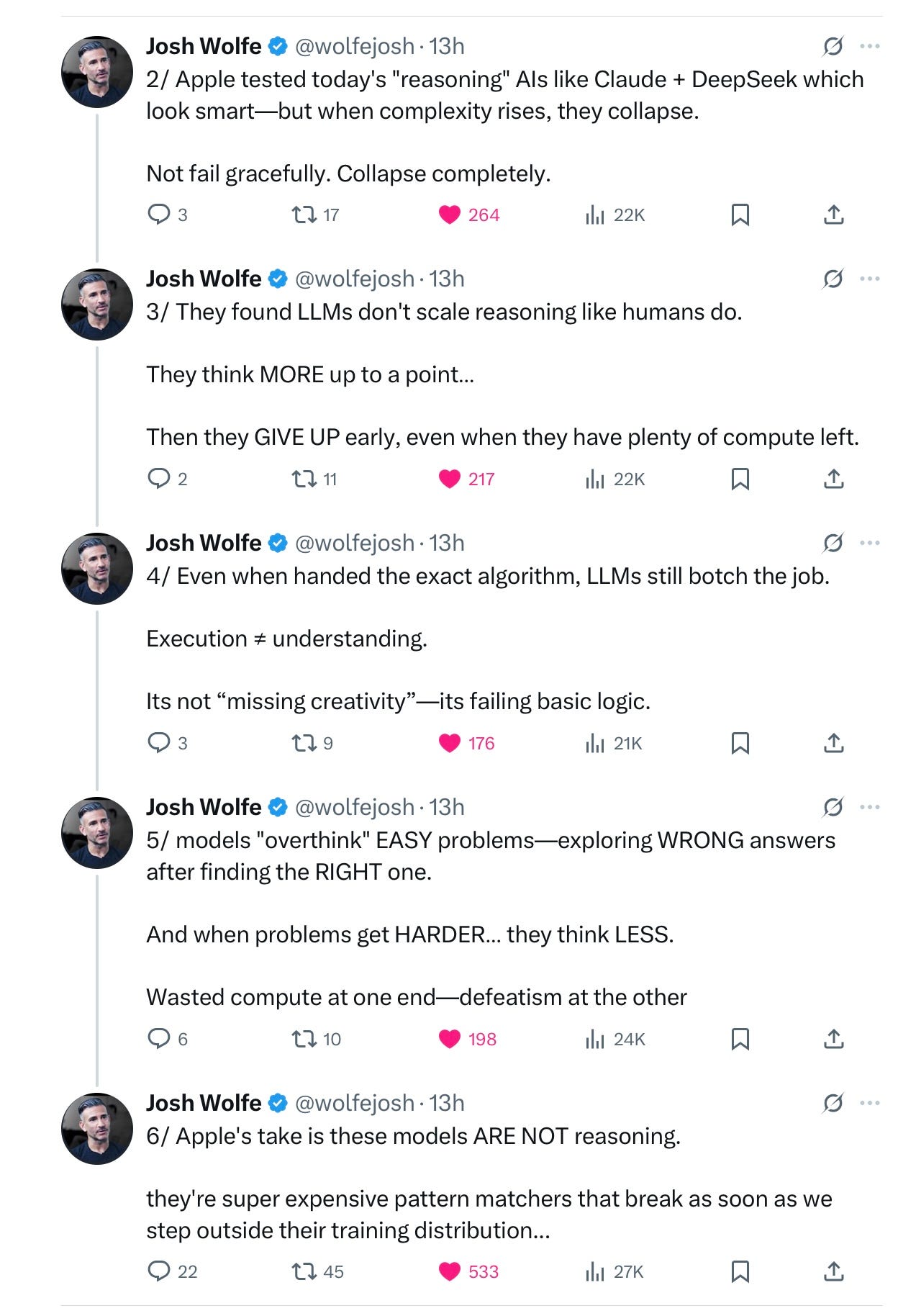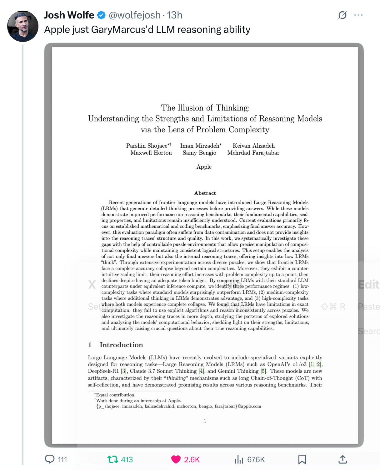 Apple has a new paper; it’s pretty devastating to LLMs, a powerful followup to one from many of the same authors last year.