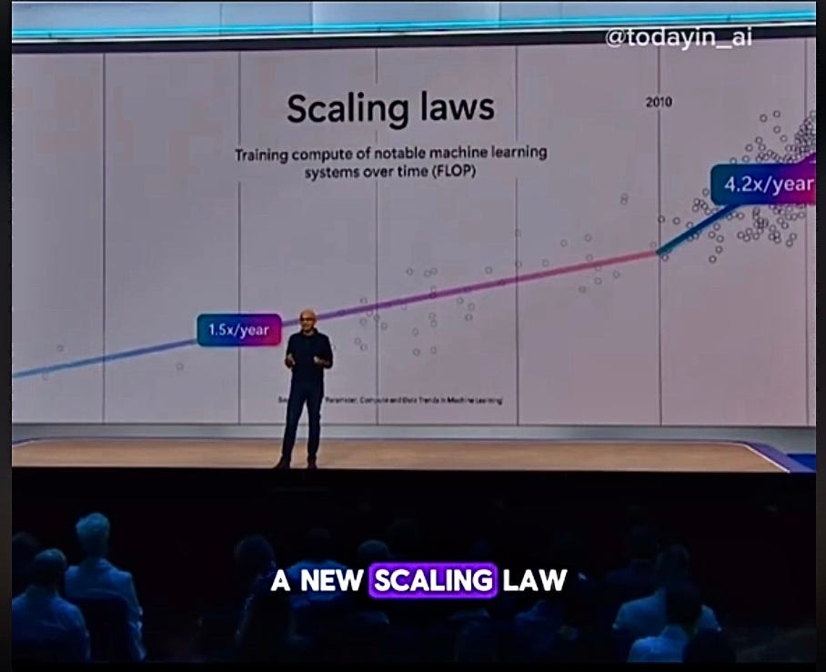 “If anything we are seeing the emergence of a new scaling law with test time or inference time compute“ – Microsoft CEO Satya Nadella, Tuesday November 19 at Microsoft Ignite