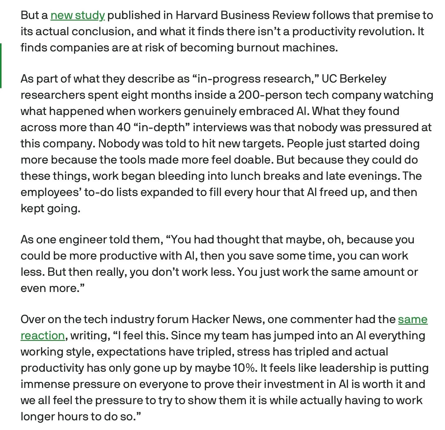 LLMs write code wicked fast, but some coders are starting to report burnout, and only relatively modest gains relative to that burnout, as a new story from Connie Loizos at Tech Crunch illustrates
