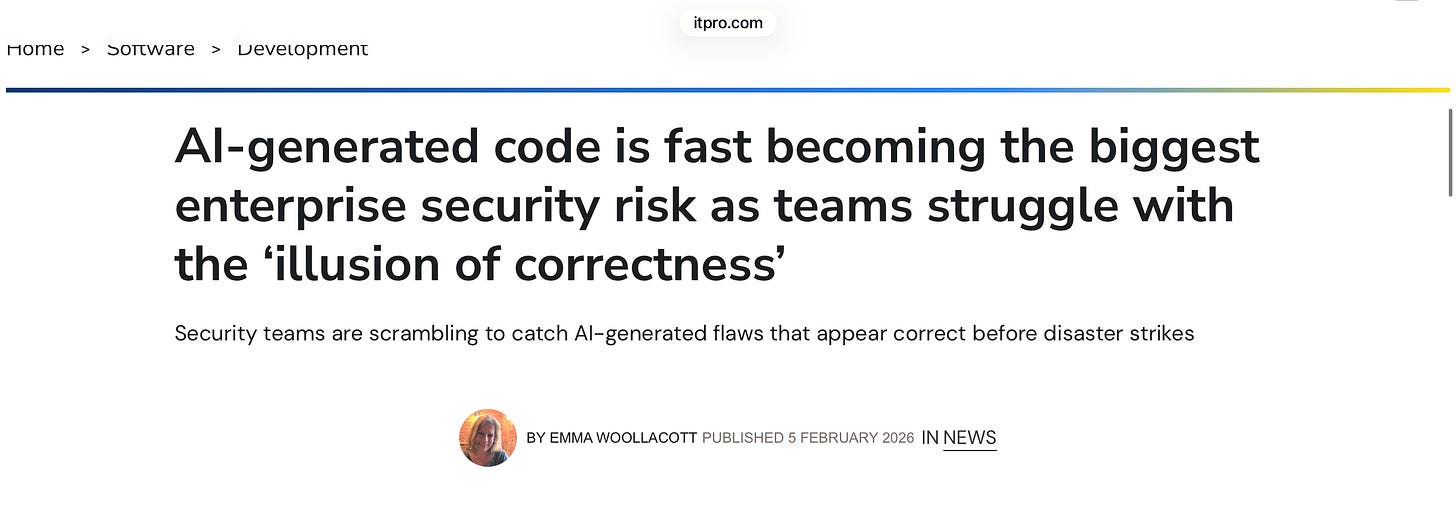 The security of the autogenerated code is very much in question, as for example this article last week noted (precisely as this substack has long warned):