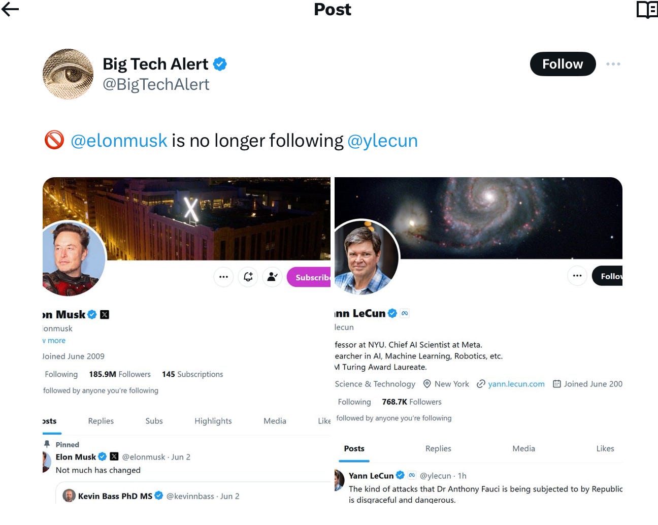 There was secondary plot, too, as the brawl between Musk and LeCun escalated. I haven’t followed all of it, but in breaking gossip department, Yann LeCun just pushed Elon Musk to the point of unfollowing him.
