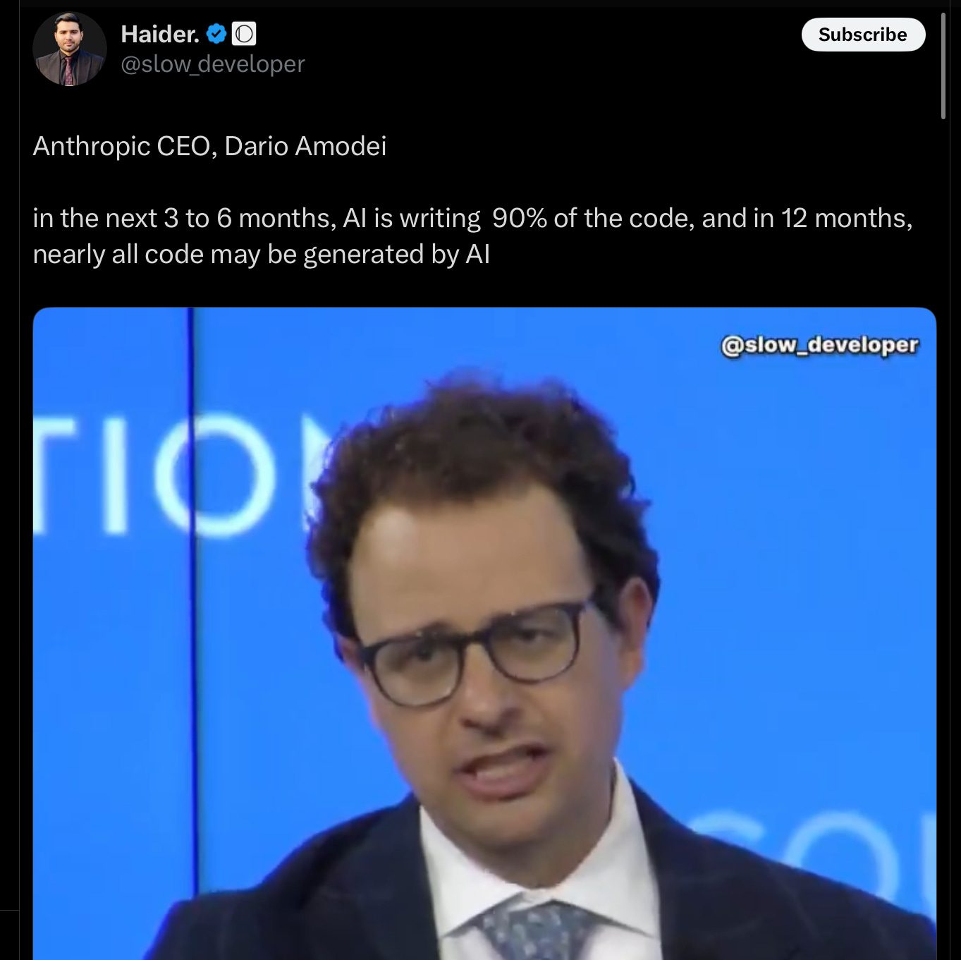 Anthropic’s CEO Dario Amodei obviously failed to read my rebuttal. A few days ago he triumphantly claimed (without evidence) that nearly all code would be written by AI within the next year: