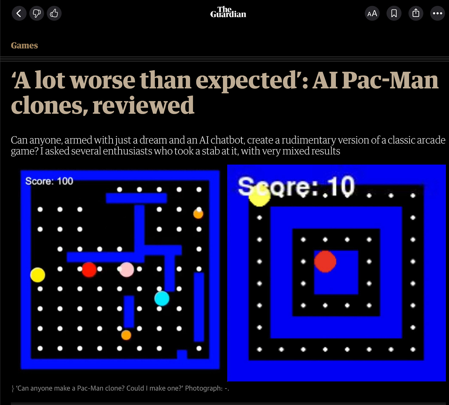 If you can’t get Pac-Man right in 2025 (full original source code to the Atari 2600 version available on github1), how on earth are you going to build the next high-quality Zelda clone next year?