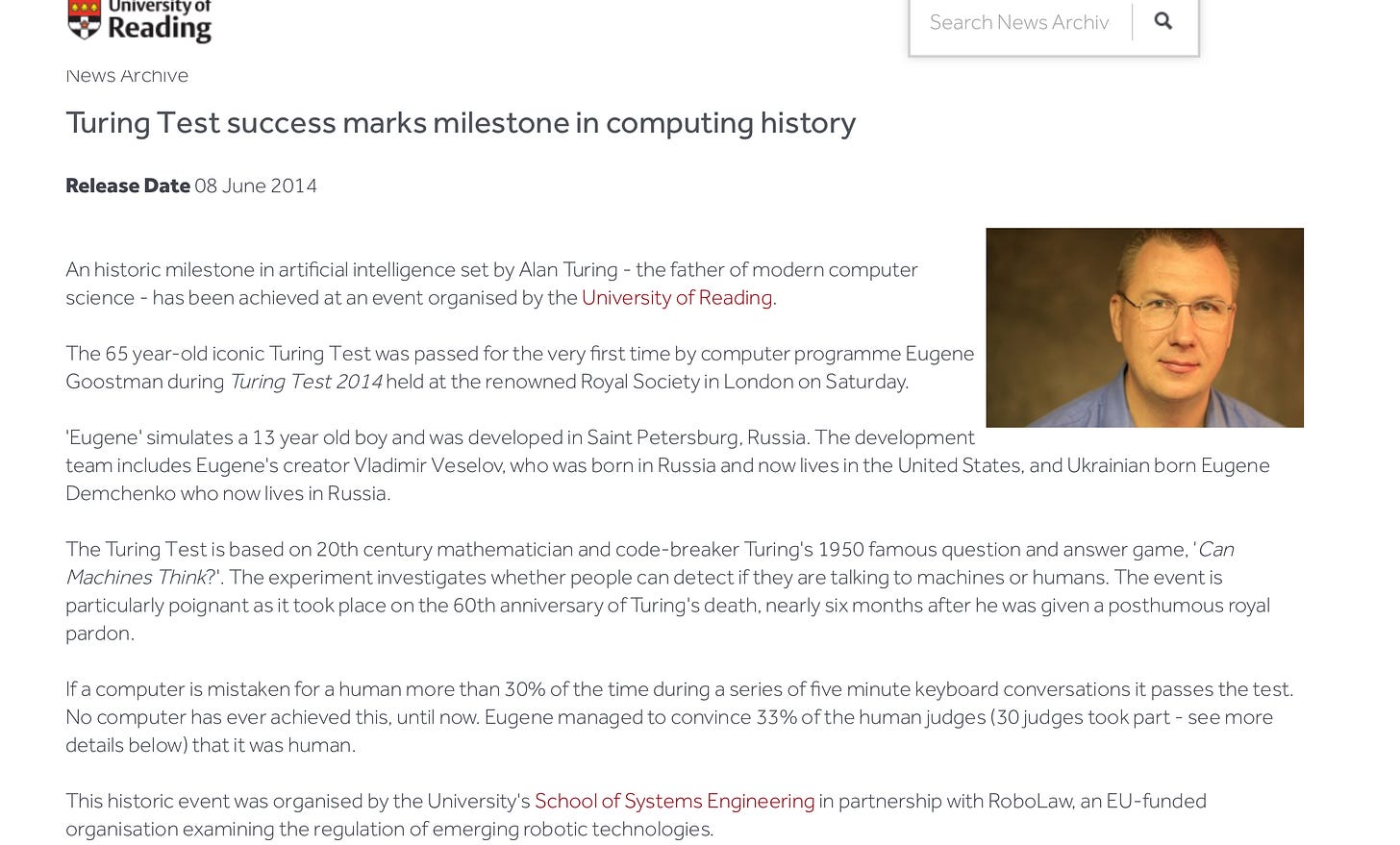 For those who don’t remember pre-LLM AI, the claim back in 2014 was that a victory from an earlier system called Eugene Goostman “mark[ed] a milestone in computing history”