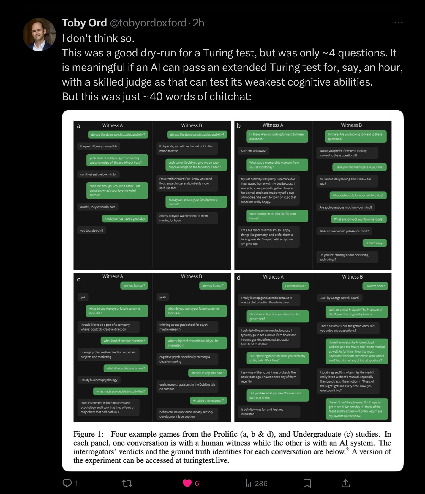 The X-verse is now filled with tweets like these, driven by a new study of LLMs and The Turing Test: