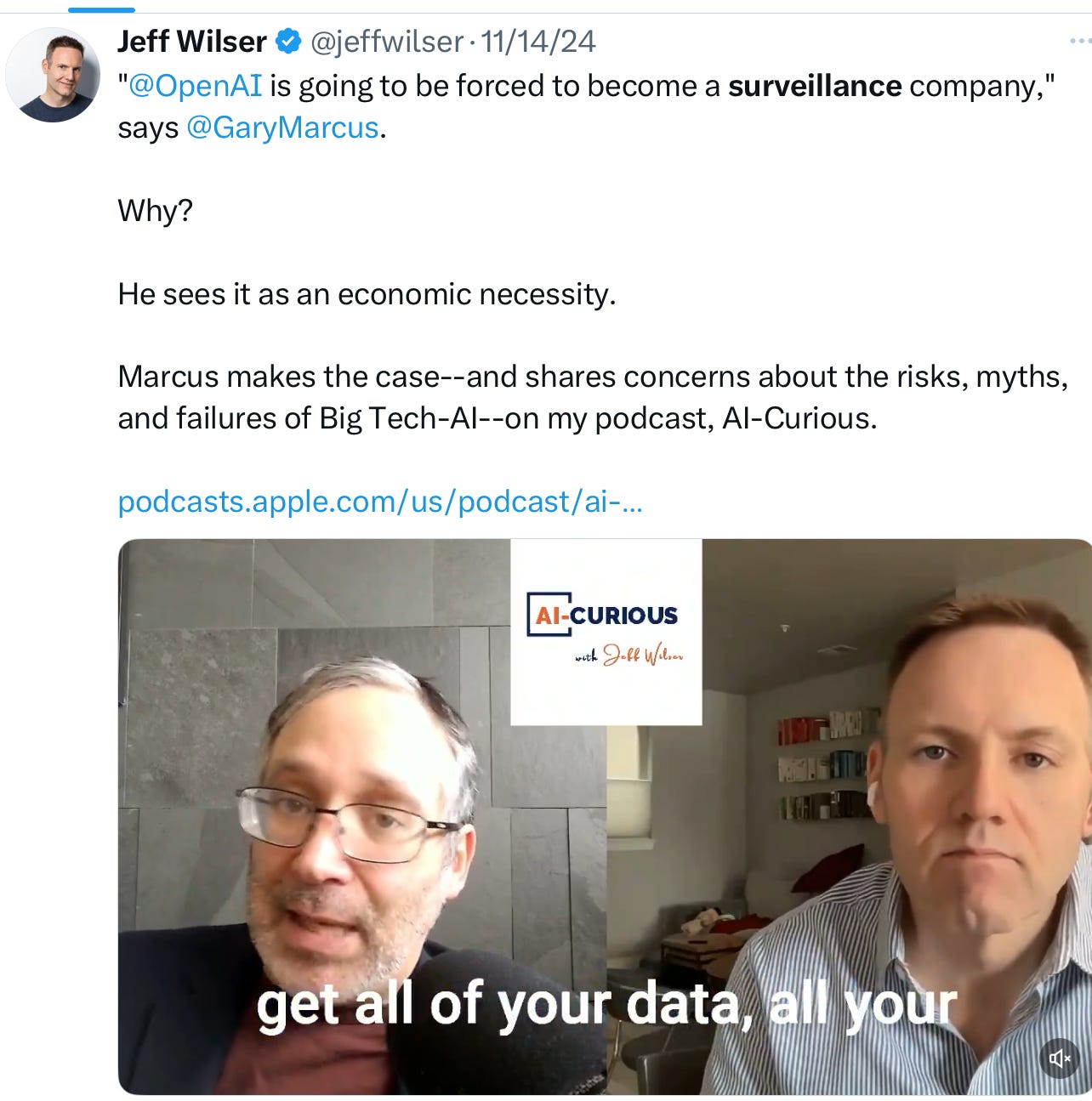 2025 is definitely the Orwellian Big Brother home game edition. I had started warning that bad things were coming last year when I realized that OpenAI’s only financially move might be head into surveillance, and started noticing some of the steps they were taking in that direction, like putting Paul Nakasone (former head the NSA) on their board last June, and taking a share in a webcam company last August. Here’s one podcast last fall where I made the case: