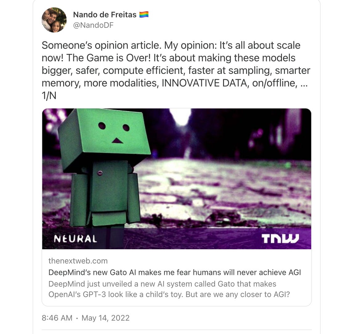 For those who have forgotten how things were, and by way of contrast from what I am about to report, here’s a pretty good encapsulation of the scale is all you need view, which I called scaling-über-alles.