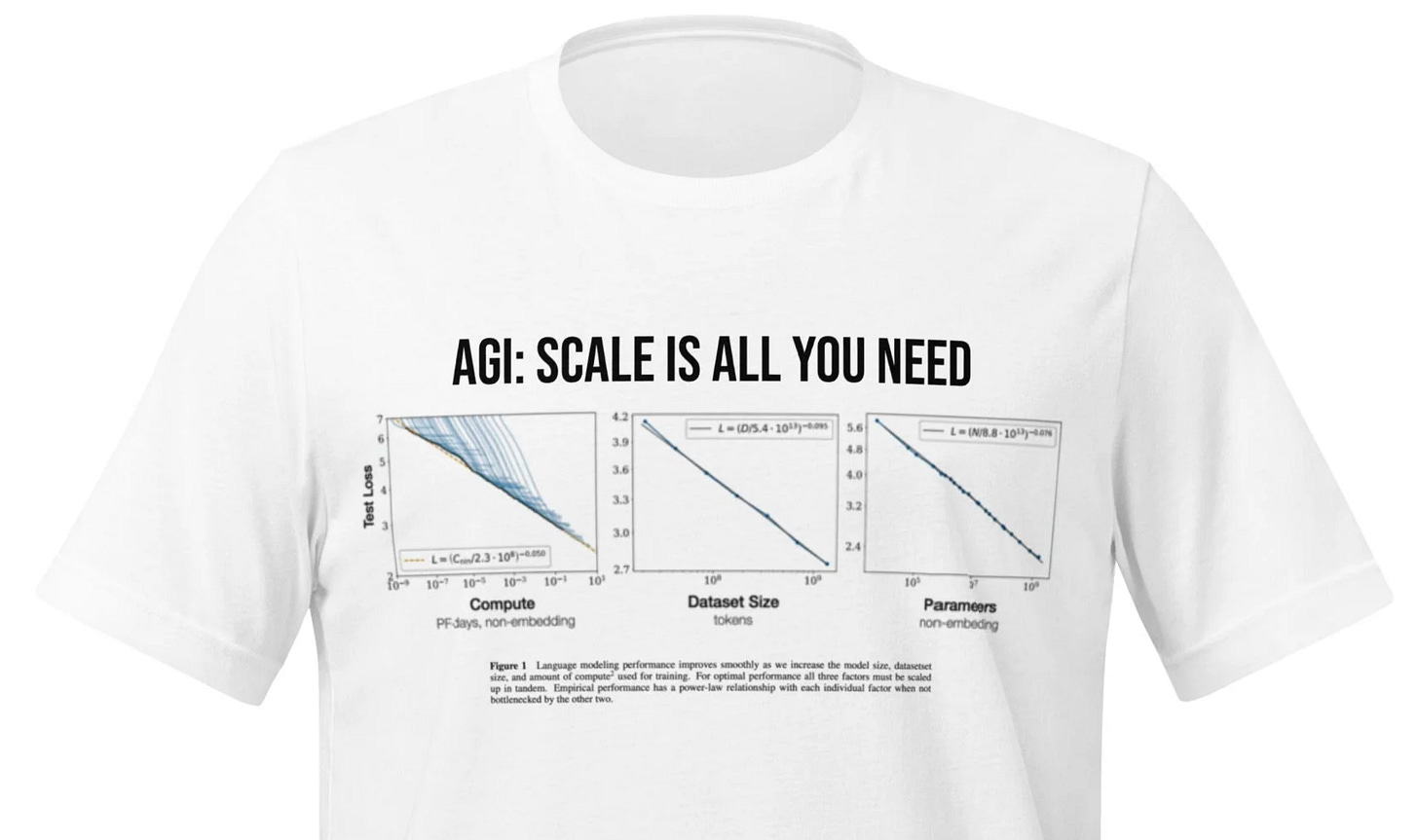 My target was the then-extremely-popular notion that we could achieve general intelligence simply by “scaling” large language models, sometimes referred to by the slogan “scale is all you need”. It was so popular you can get it on a t-shirt: