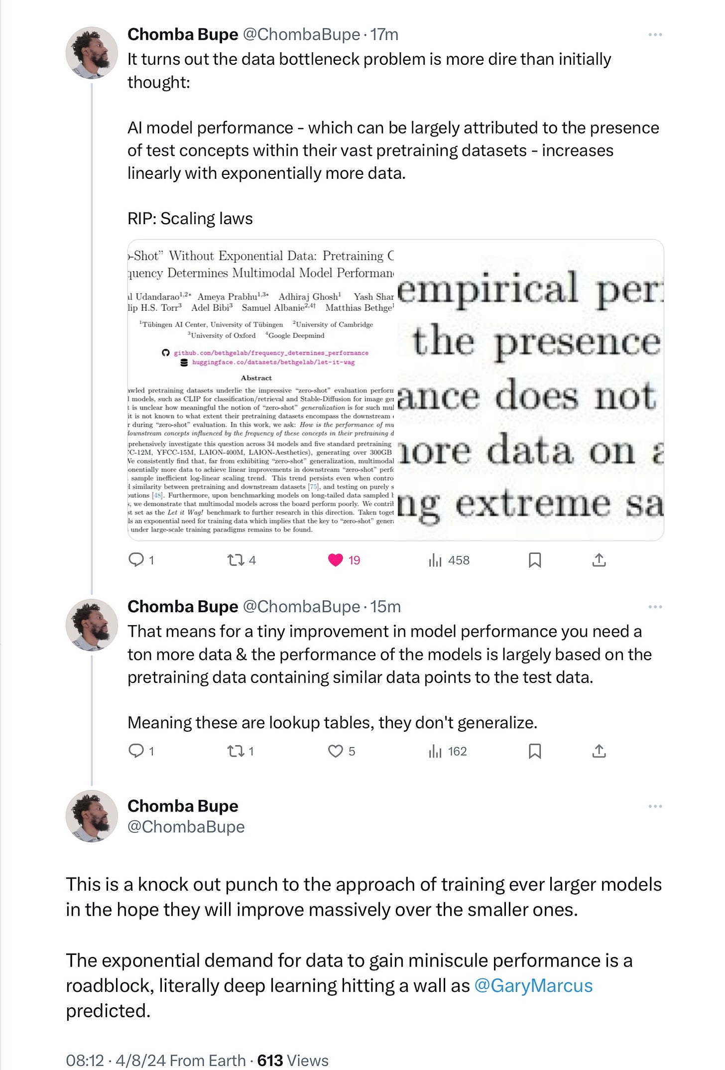 An important new preprint that just came out on data and scaling. Bupe explains it well:
