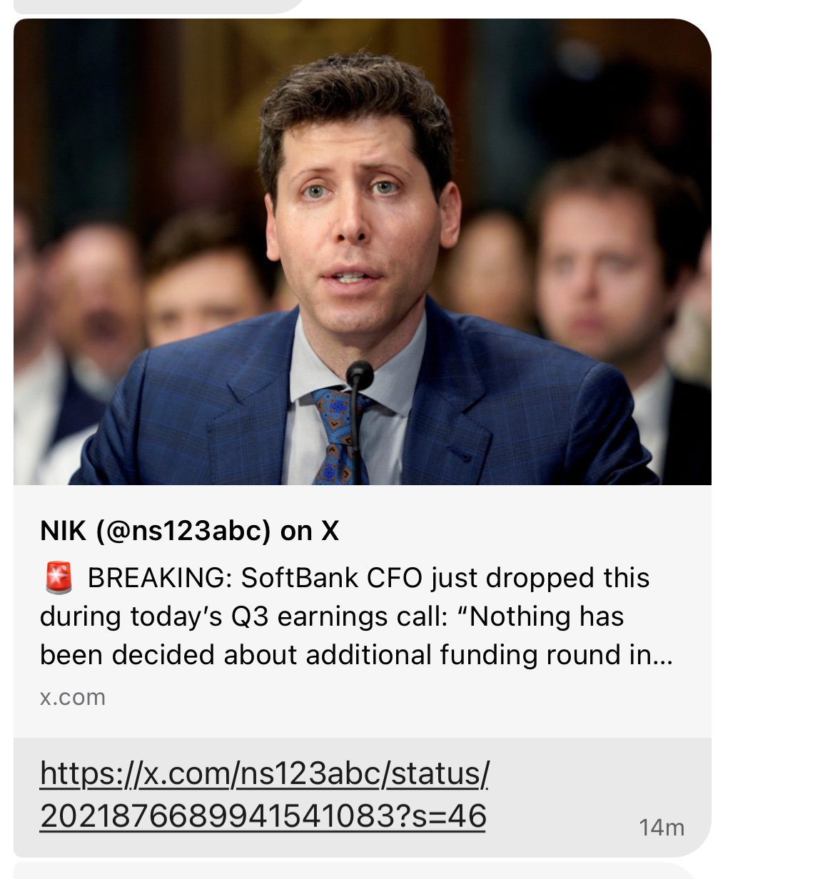 My jaw dropped when I read that. Ouch. “Nothing has been decided” is hardly a vote of confidence. Especially coupled with the Nvidia walkback of a week earlier. (Though in fairness, the CFO is not Masa Son himself).