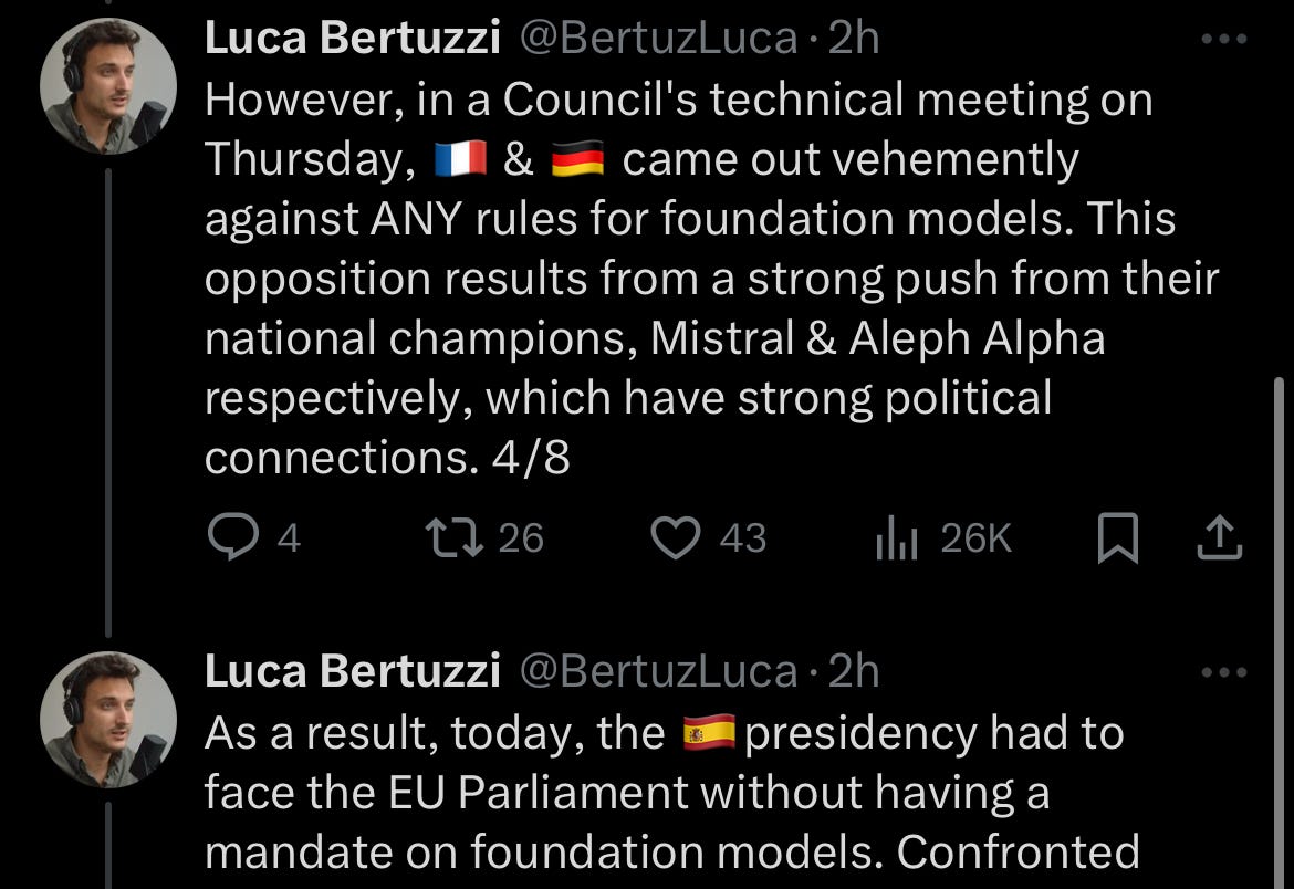 Possible future: Literally every bad thing that comes out of generative AI-and there will may well be a lot—people will wonder: “maybe this wouldn’t have happened had Macron and Scholz not blocked the planet’s best effort at keeping the tech companies in check.”