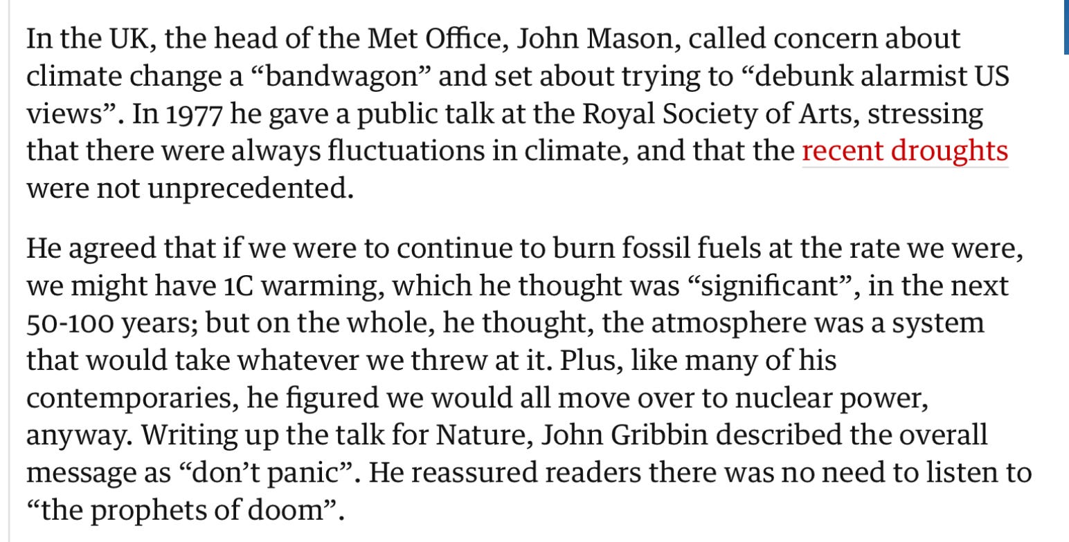 Meanwhile, we humans have a rather bad history of neglecting issues that are both serious and dark on the grounds that they rest on things we havenāt figured out. Hereās a summary of the situation with respect to climate in the 1970s: