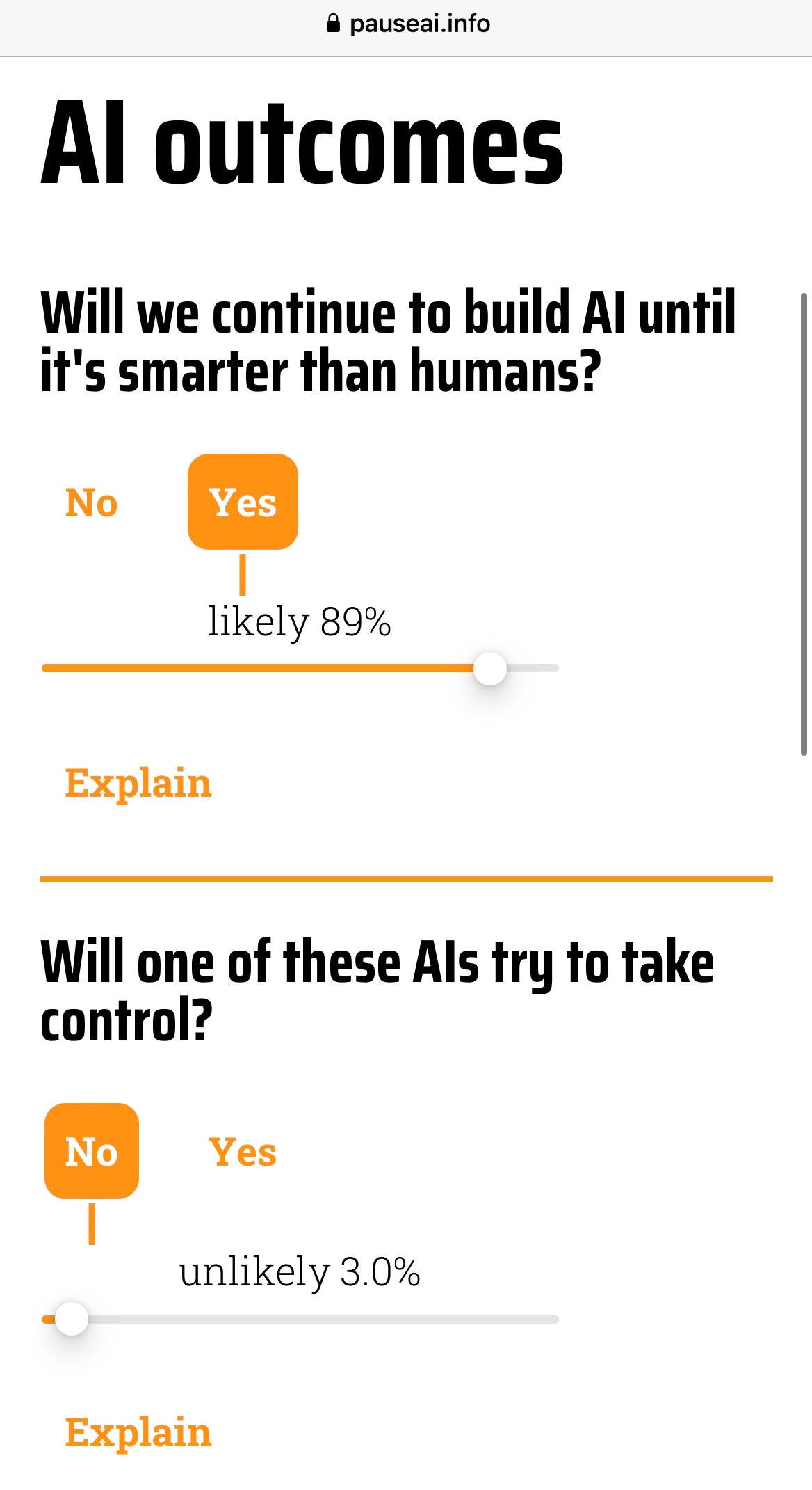You can try it out; you set your best guesses for a bunch of sliders, and out comes your own personal p(doom) estimate, suitable for discussing at Silicon Valley cocktail parties.