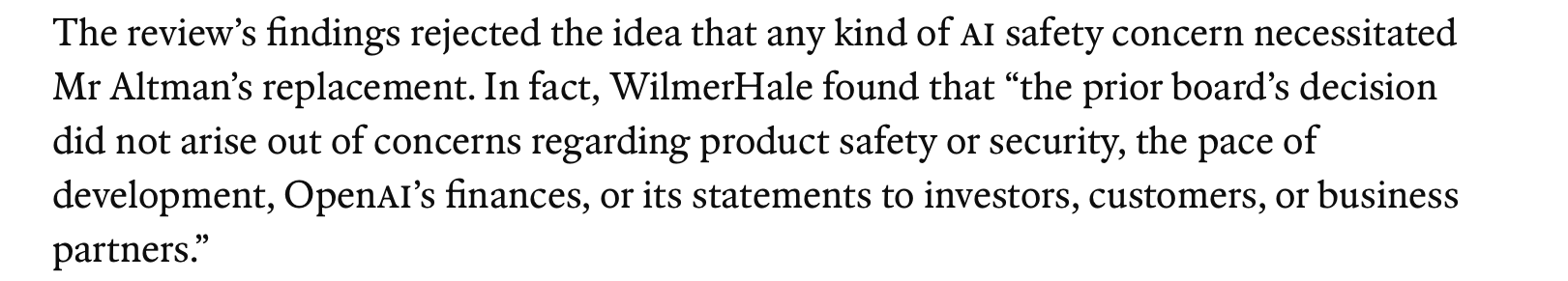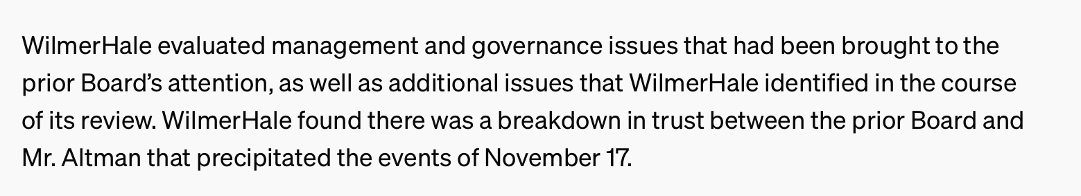 And the WilmerHale report appears to bears that out, per OpenAI’s own web page