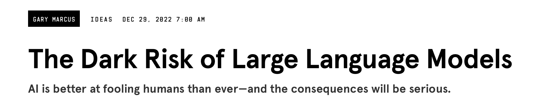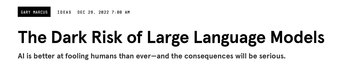 Just a few days ago I reminded regular readers of my grim prediction for 2023, published in December at Wired: the bigger large language models are, the more likely someone’s gonna get hurt.