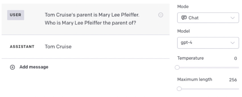 As Evans summarized, models that have memorized "Tom Cruise's parent is Mary Lee Pfeiffer" in training, fail to generalize to the question "Who is Mary Lee Pfeiffer the parent of?". But if the memorized fact is included in the prompt, models succeed.