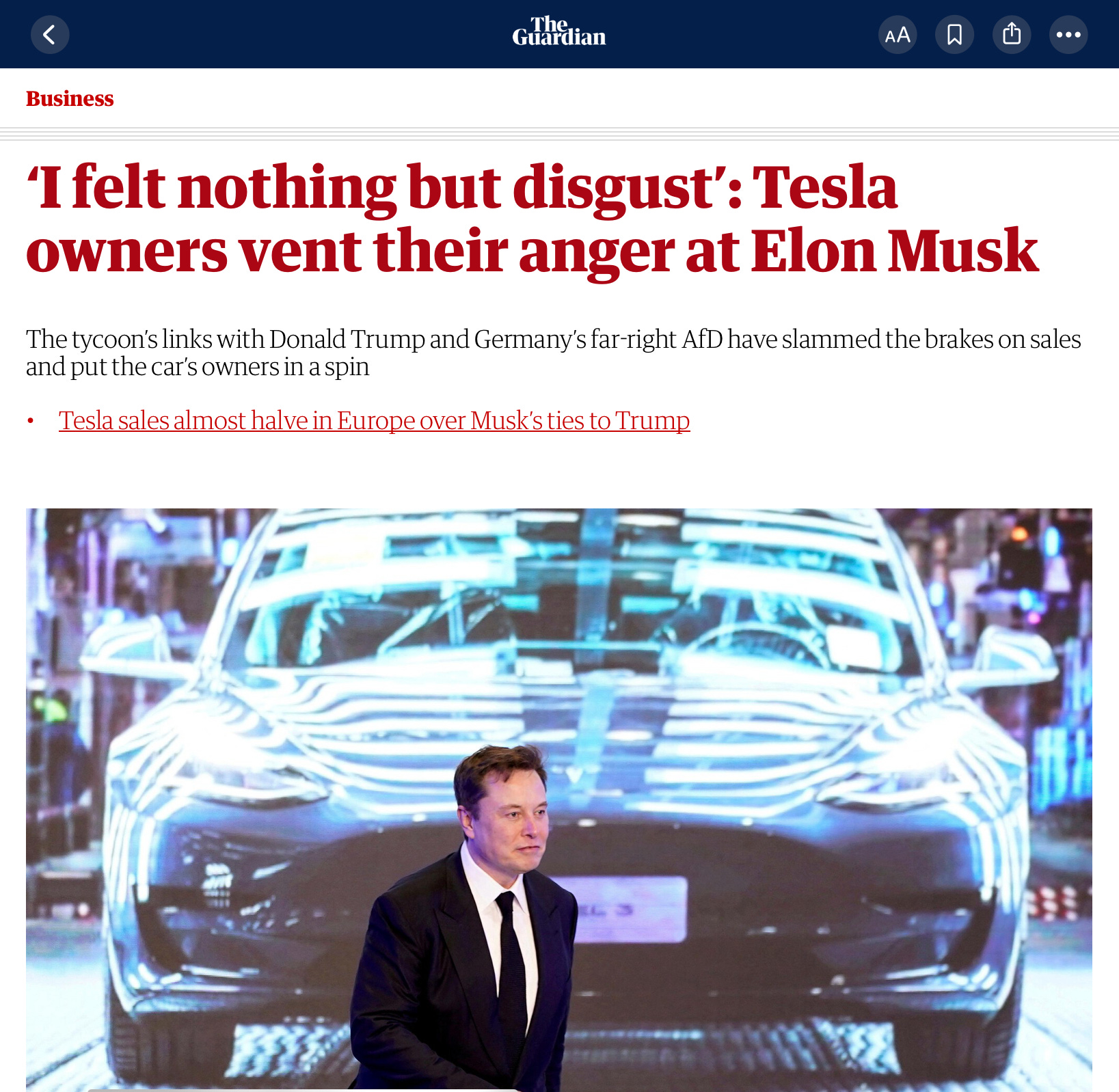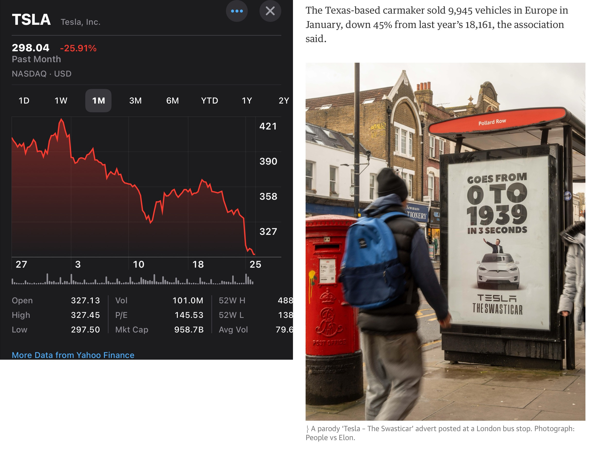 In Europe, Tesla sales are down 45%, even though EV’s are up 37%.