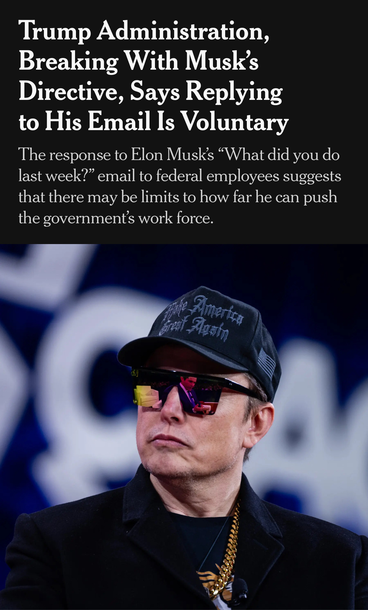 Yesterday, multiple Trump administrators, even Trump loyalists like Gabbard and Patel, pushed back against Musk, directly countermanding his recent email to government staff:
