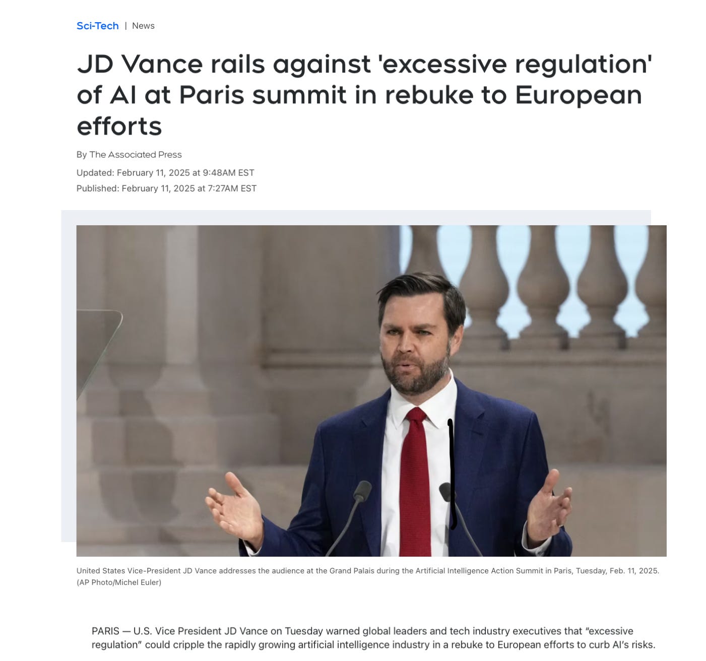 In remarks earlier today at the Paris AI summit, JD Vance pretty much confirmed all that I warned about last year.