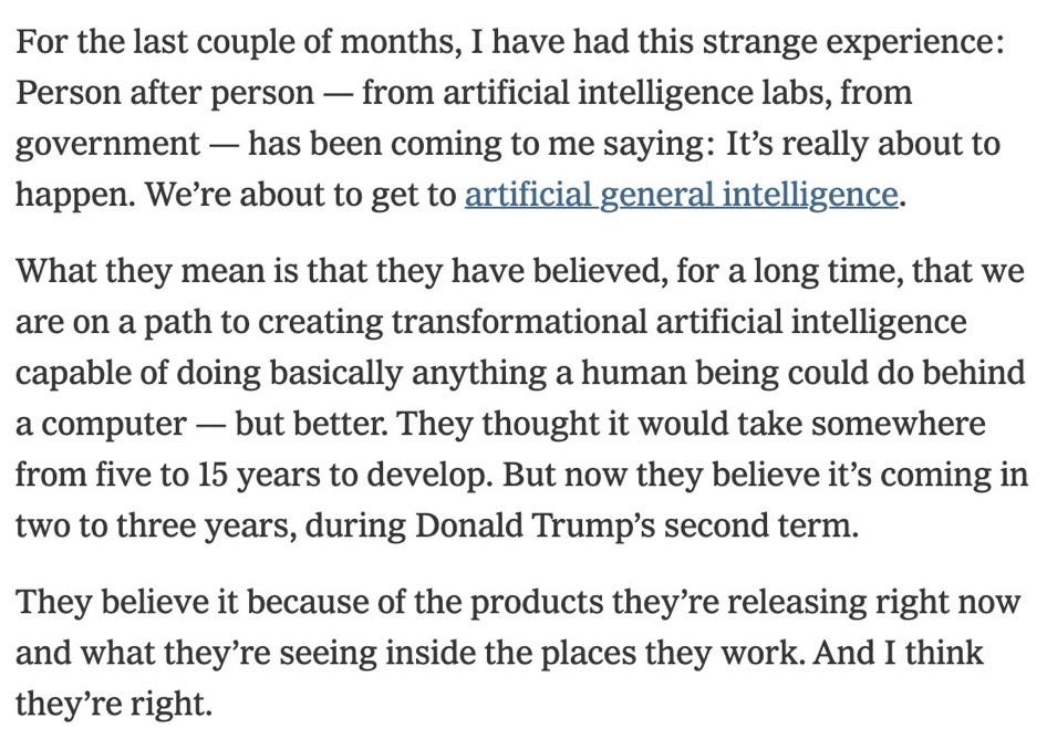 In a new episode of his podcast with Ben Buchanan former special adviser for artificial intelligence under Biden, entitled, The Government knows A.G.I. is coming, The New York Times’ usually fabulous Ezra Klein declares with too much certainty that AGI is pretty much imminent, and urges you to get with the program.