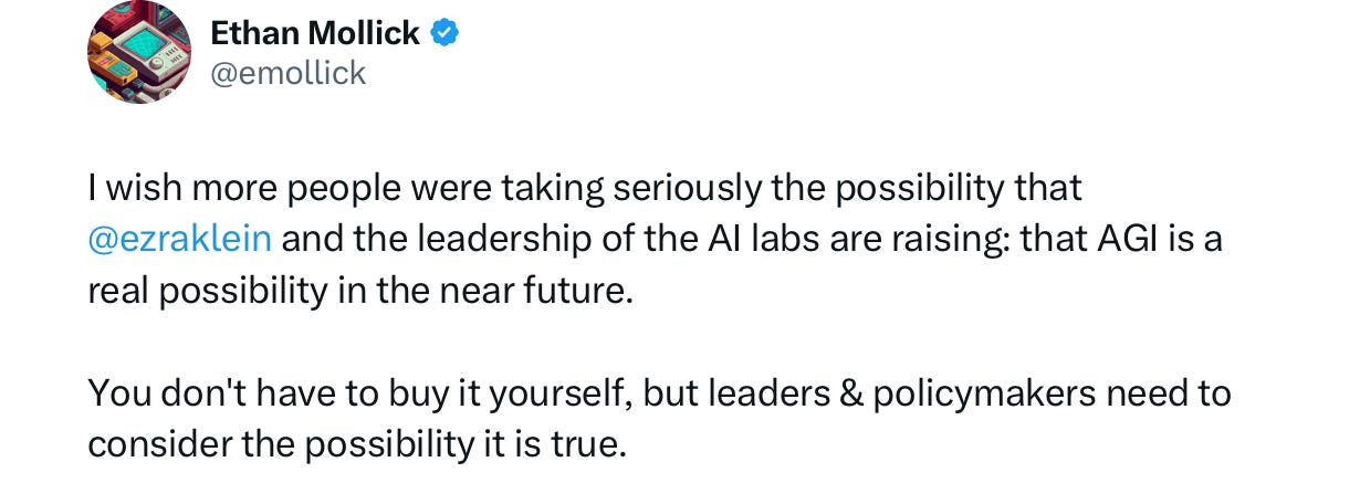 Before I get to my own take, and why I think Klein did a disservice to the alternative, I want to address something that the ever-optimistic Wharton Professor Ethan Mollick wrote re: Klein’s statement, on X: