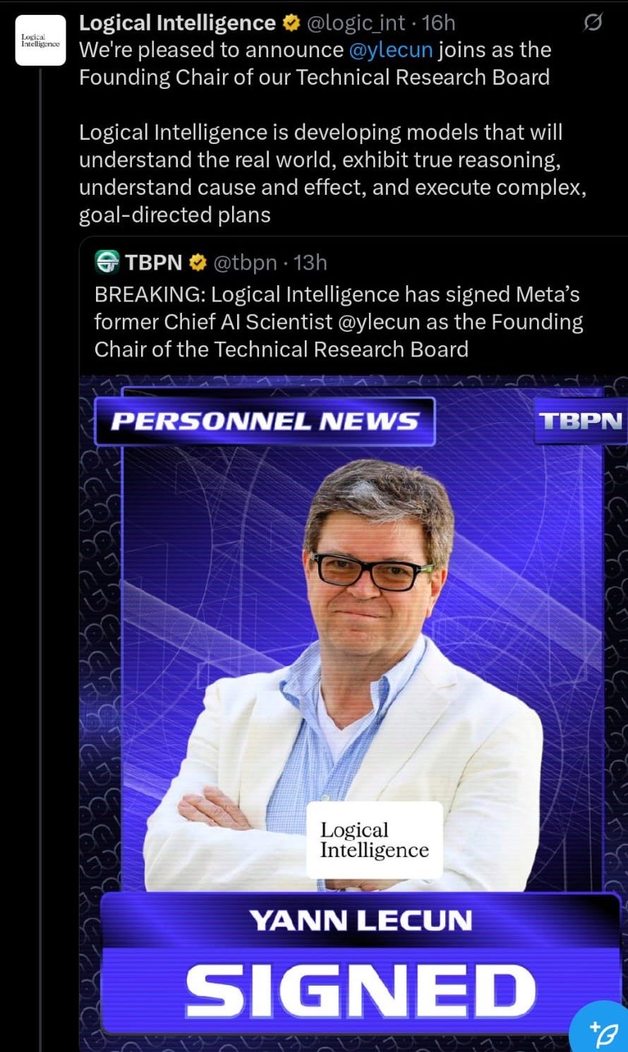 I have to agree with those pointing out that a bunch of people jumping ship says more about the failure of LLM’s than it does about current approaches with world models. The idea that somewhere someone has conceptualized the model that will prove to be the gateway to AGI is nearly as presumptuous as claiming that merely scaling LLM’s will lead to general intelligence