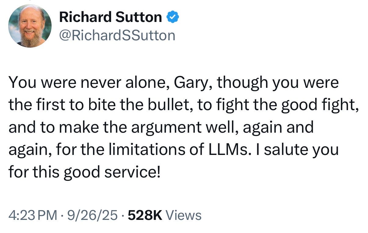 When the LLM crowd has lost Sutton – and when Sutton sounds exactly like me – it’s game over.