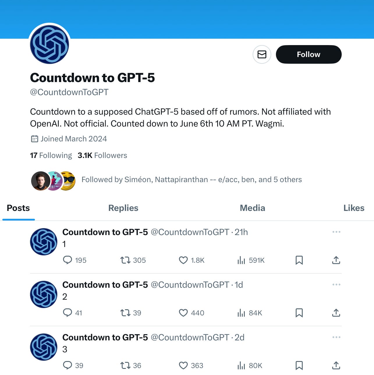 On X, there’s even a whole account called countdown to GPT [screenshot from June 6]: