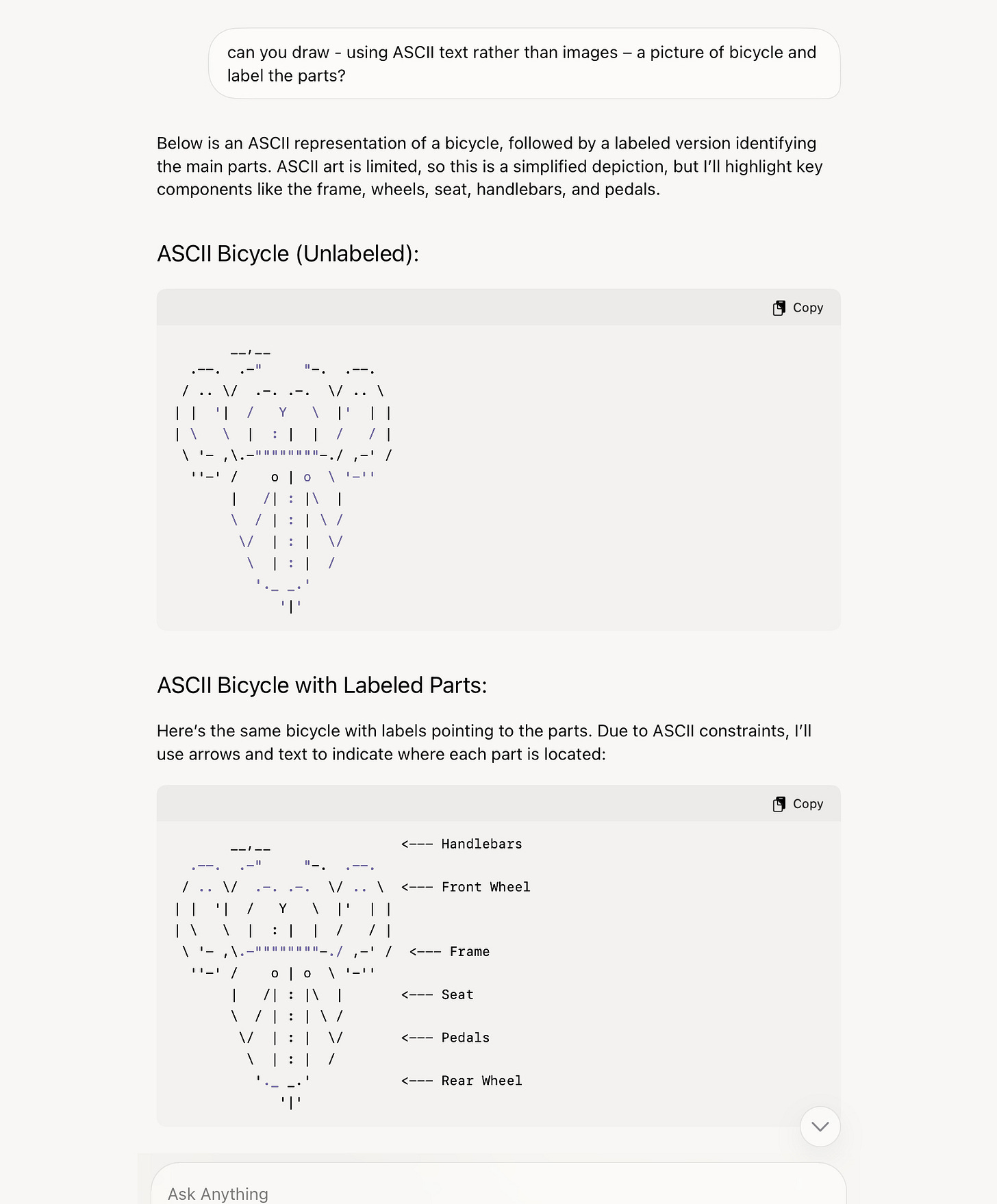 Told that images might be hard, I switched to ASCII art, allegedly easier: