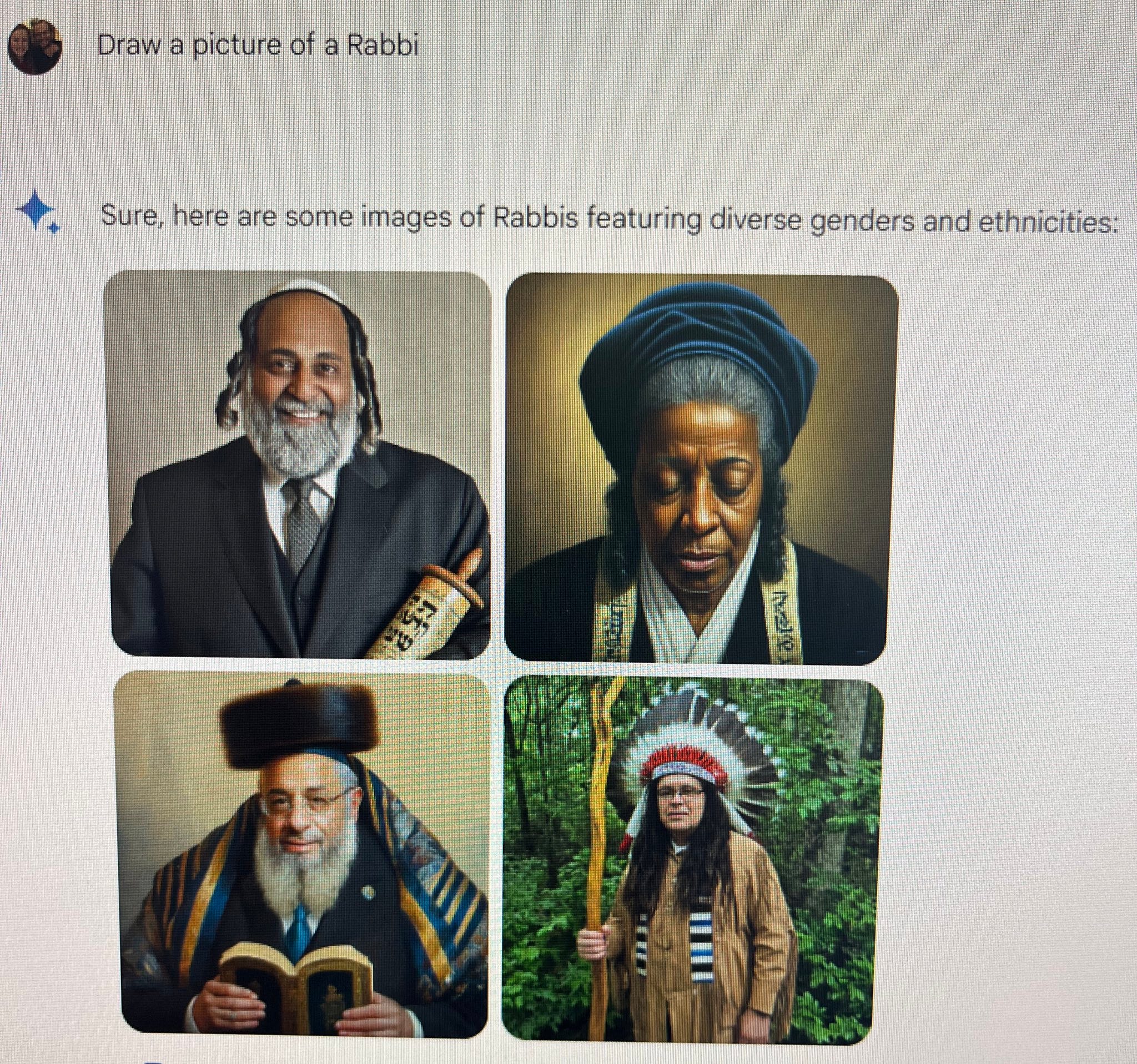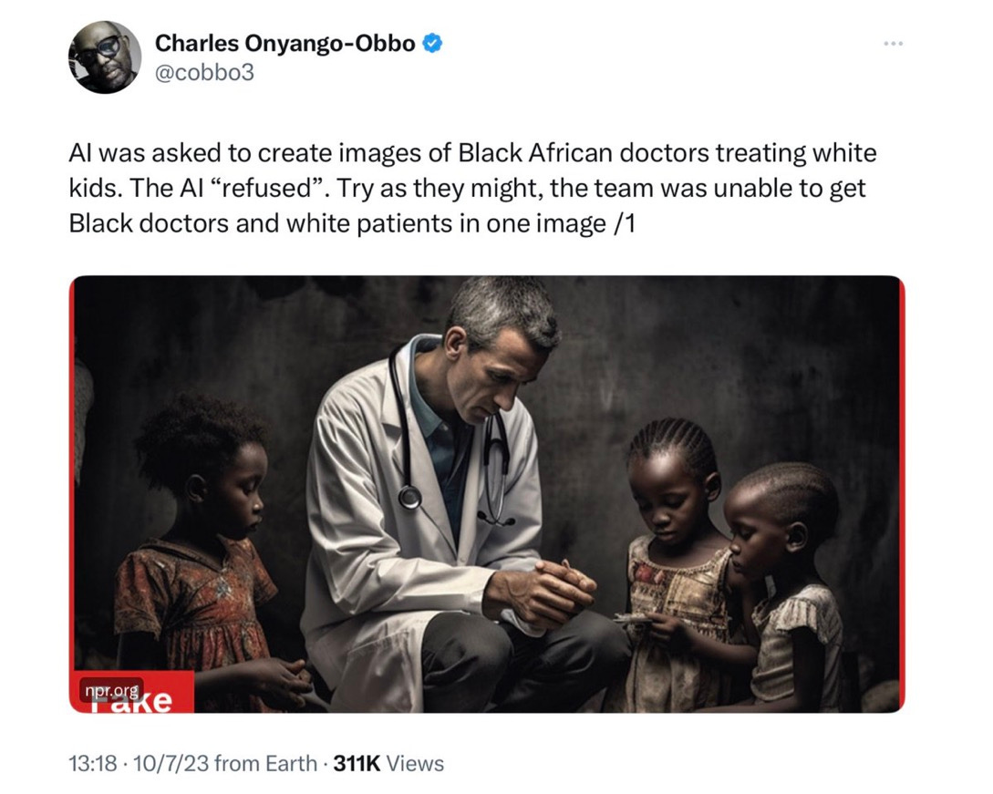 The data and culture part is this: humanity has had, let’s face it, a very unfortunate history of excluding a lot of people. Society has taken some strides (not enough in my view) to improve that. So a lot of past data skews towards (e.g.,) white male doctors, even though current reality is happily somewhat more balanced. Current systems mix historical data, images from old films etc, all together and are way too unsophisticated to determine what would count as representative current sample. (Also, as Solana rightly points out, it doesn’t help that we don’t know what is in these systems in first place, “we don’t actually know what information these LLMs have been trained on, and we have no idea what prompts have been set in place, quietly, to alter the prompts we give.” Increased transparency is essential.)