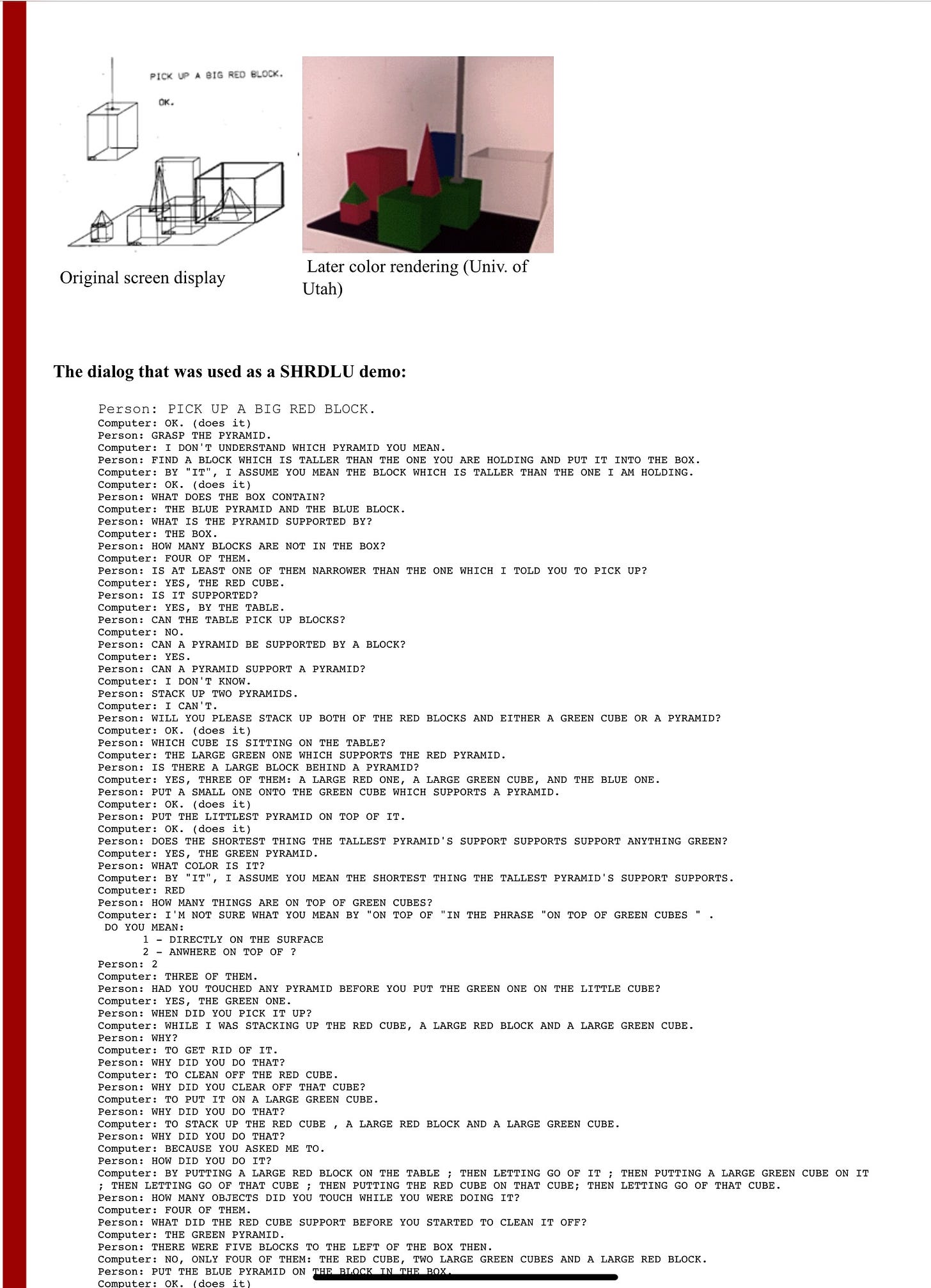Back in the 1970’s, a lot of work went into building AI systems with explicit models of the world, like Terry Winograd’s SHRLDU, which modeled a simple blocks world. To our knowledge, no LLM-based system can yet reliably do what SHRLDU tried to do then: