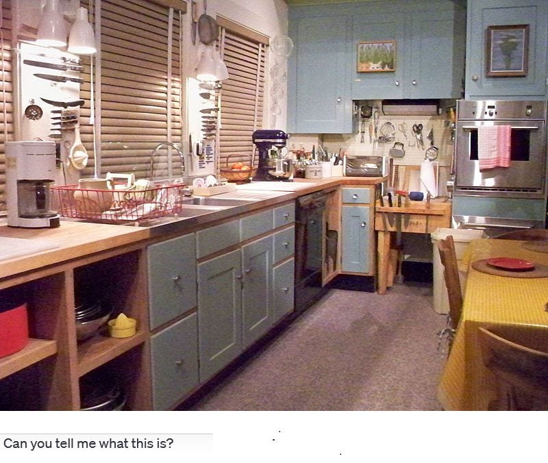 We started thinking about this the other day, when Ernie did an experiment. He’s fond of seeing how things change over time. In Rebooting AI, published in 2019, we focused largely on language but used a few visual examples; one is reprinted below, Julia Child’s kitchen. Here’s the image (printed in black and white in the book, but reproduced here in color):