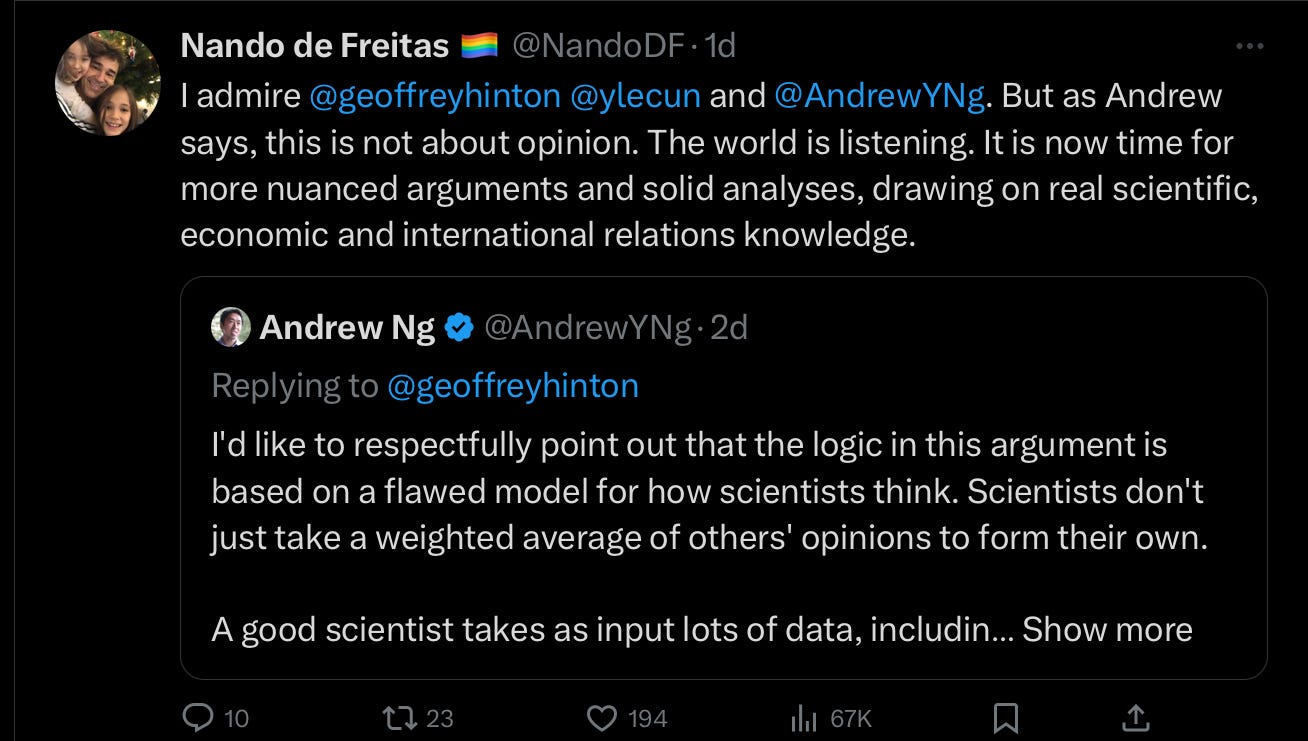 And so did DeepMind exec Nando de Freitas, rather soberly: