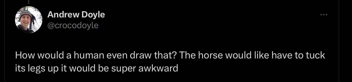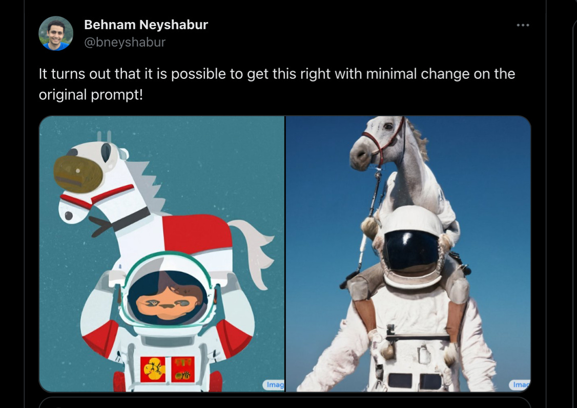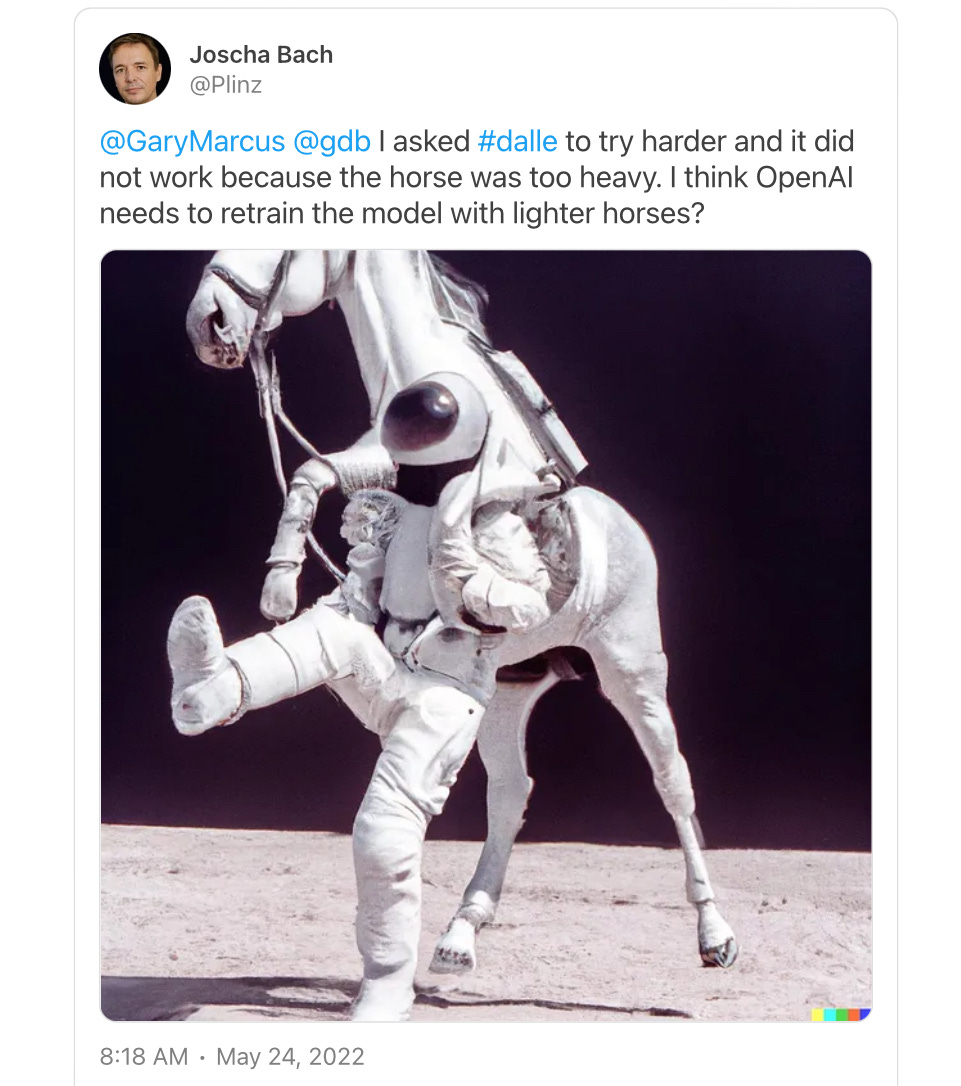 Only thing was, it turns out that a horse riding astronaut wasn’t impossible draw, and the model didn’t need to be retrained to do it. It wasn’t morally averse to pictures of horses riding astronauts, either.