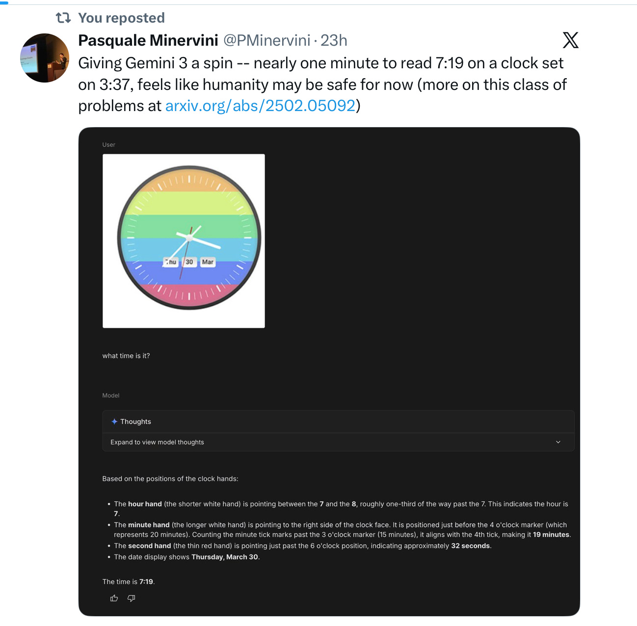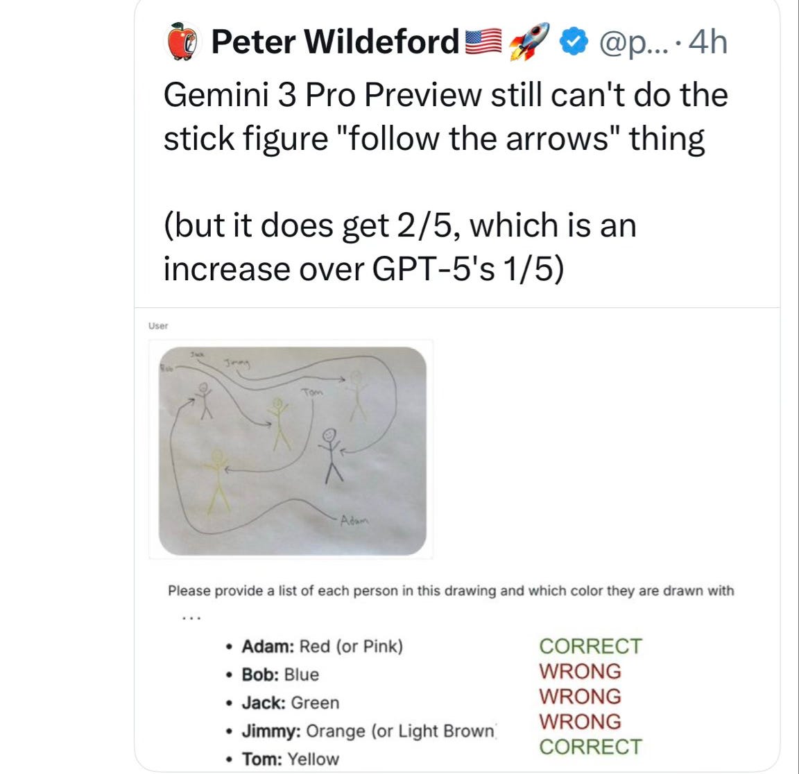 Google announced their big new state-of-the-art model yesterday, Gemini 3, on most measures better than any other model out there. Still, the usual reports of silly errors and embarrassing results trickled out within hours.