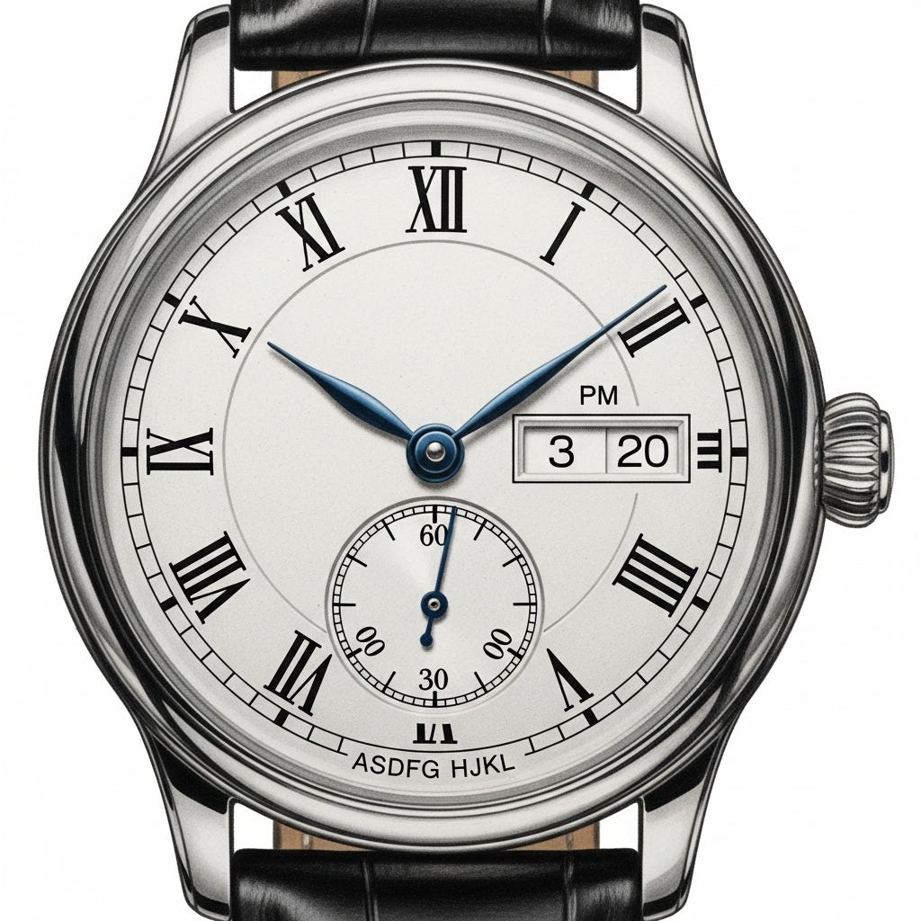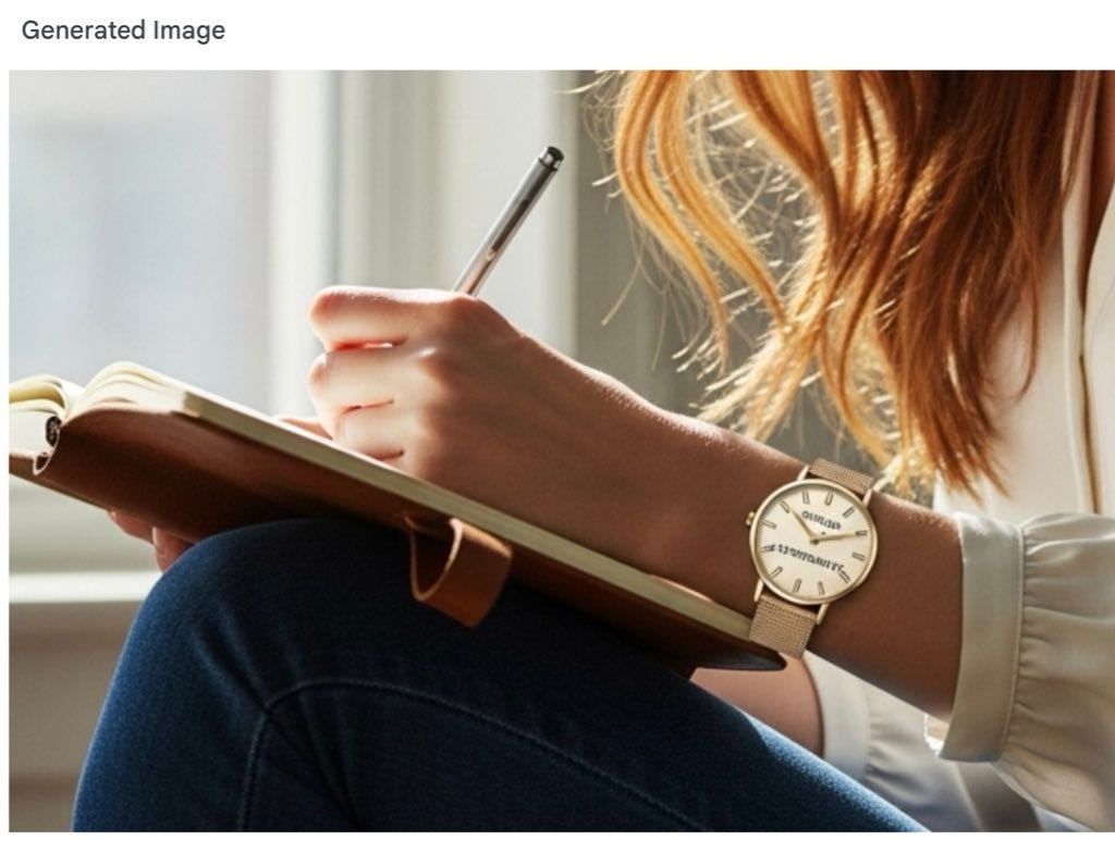 Text in general is better now (though not in this image) but watch comprehension of any time other than 10:10 (most frequent in advertisements) remains dreadful. Here is an example when I asked Imagen 4 for a watch with 3:20 pm: