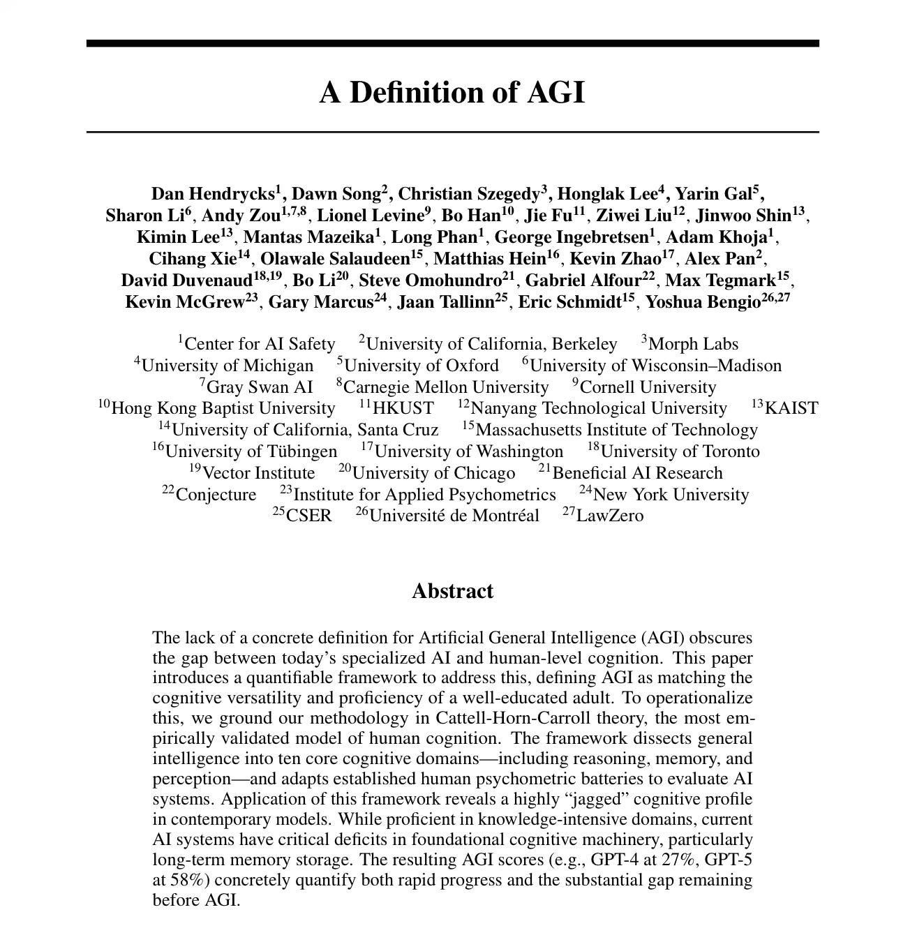 By coincidence, though, that’s not the only new essay I have out today about AGI. The other one (in which I played just a tiny role) is with AI safety researcher Dan Hendrycks and a large cast of of 30-some eminent researchers, including Yoshua Bengio, in which we try to define AGI.