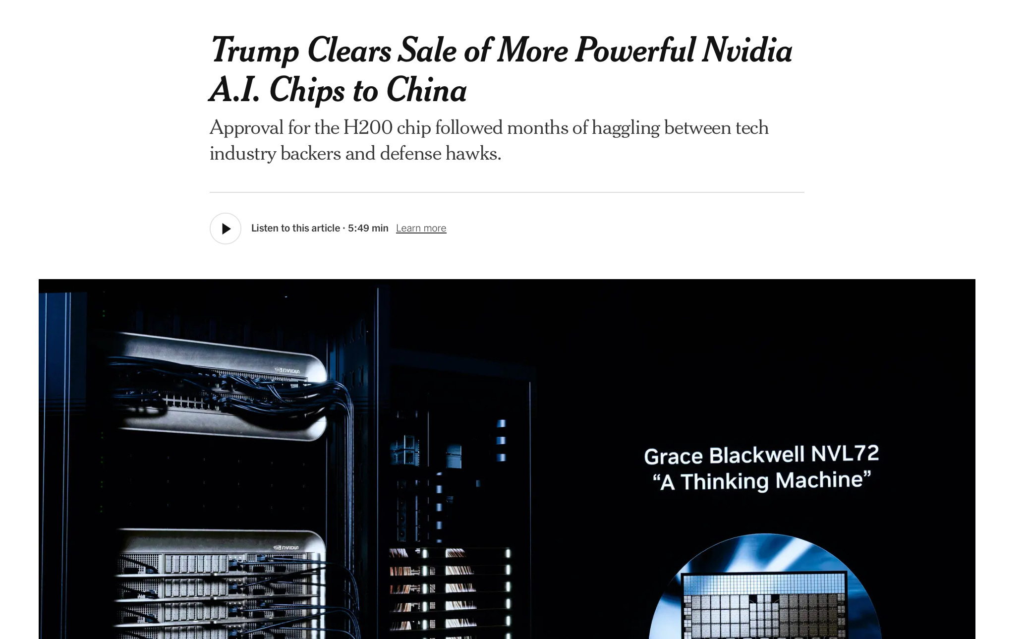 But if we are racing with China why are we suddently allowing Nvidia to sell them H200s, among the most powerful (though not quite the most powerful) chips in their line? I just don’t get it.
