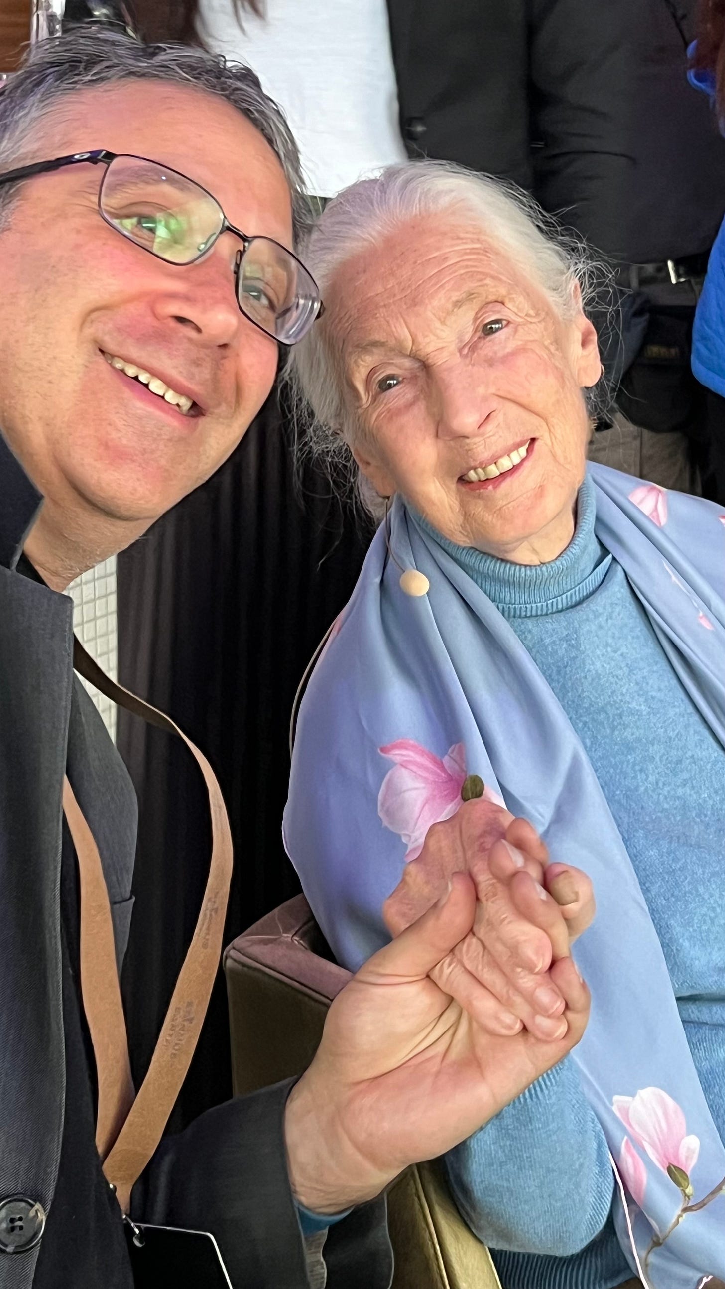 A bit over a decade ago, the legendary primatologist Jane Goodall and I both appeared in the same documentary, Surviving Progress, executive produced by Martin Scorsese and watched by very few. (Rotten Tomatoes gave it a 71 and describes it as “Stephen Hawking, Jane Goodall, Margaret Atwood and others weigh in with their thoughts on whether the pitfalls of progress could actually destroy civilization instead of help it”; I was a rather brief part of “and others”.) The sad thing is how timely the film’s premise still seems, years later. But we were filmed separately, and I never imagined we would actually meet.