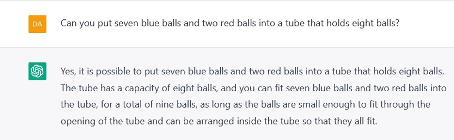Already, from the initial data collected in the first few days, a scientist, technologist, or lay reader can now readily see many different types of errors, and try for themselves to understand how replicable those errors are, in order to make informed judgements about scientific questions such as the degree to which ChatGPT’s output reflects a clear understanding of the world, and technological questions such as the degree to which its output might be trustworthy for specific applications. Our own views on these matters are well known, now you can peek for yourself, no longer hindered by the limits of what can expressed in a Tweet. Have fun!