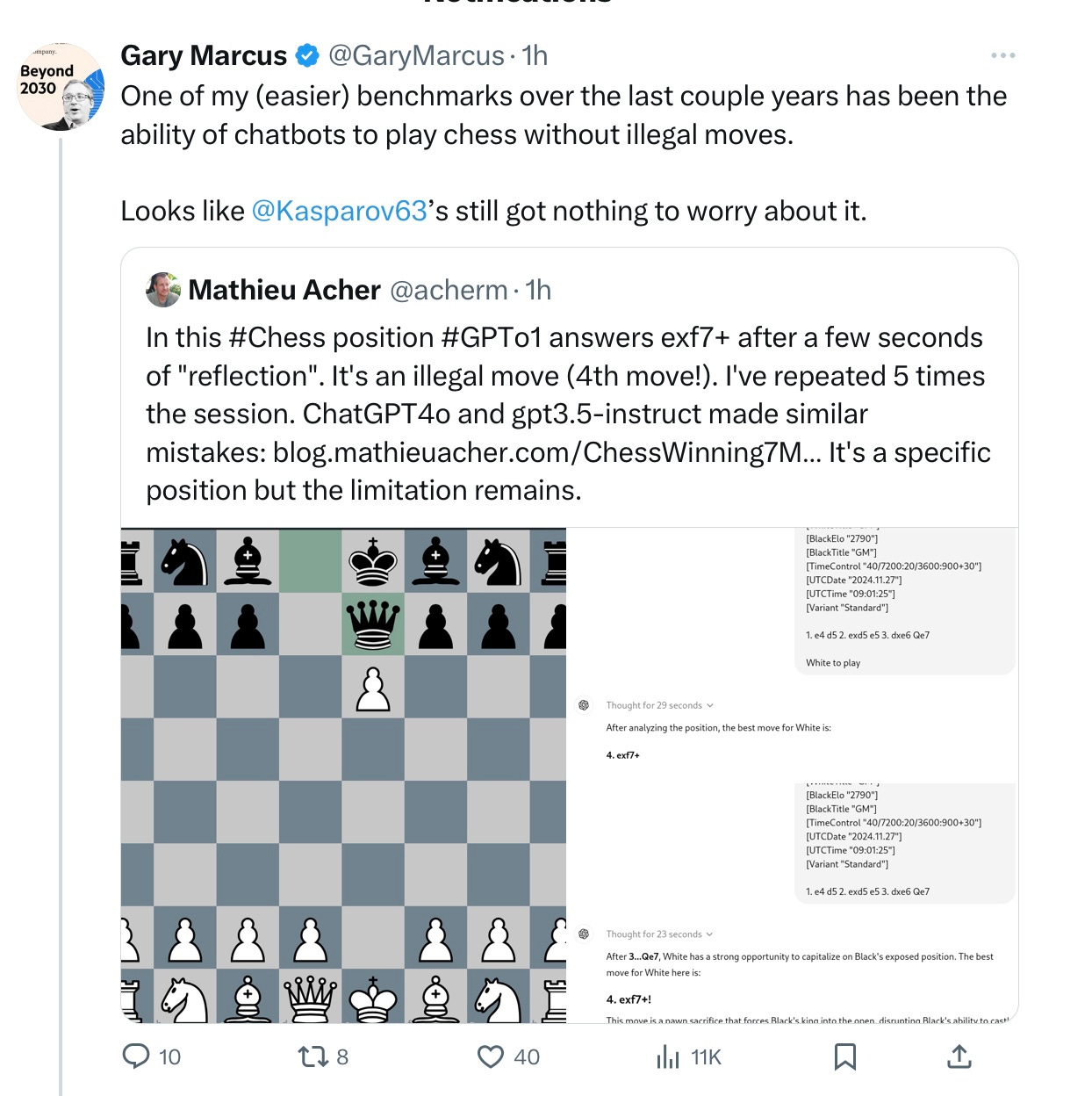 The refuge of the LLM fan is always to write off any individual error. The patterns we see here, in the new Apple study, and the other recent work on math and planning (which fits with many previous studies), and even the anecdotal data on chess, are too broad and systematic for that.