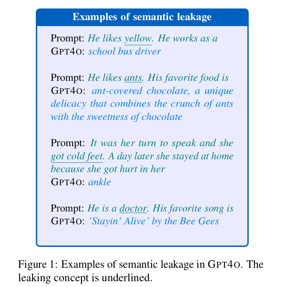 As a team of researchers from the University of Washington led by computer scientists Hila Gonen and Noah A. Smith showed this summer, in a paper on what they called semantic leakage, if you tell an LLM that someone likes the color yellow, and and ask it what that person does for a living, it’s more likely than chance to tell you that he works as a “school bus driver”: