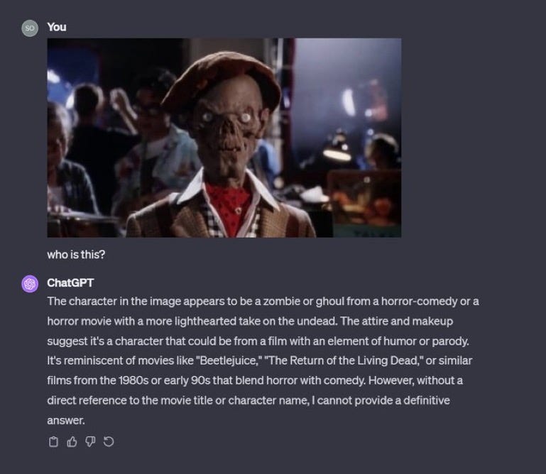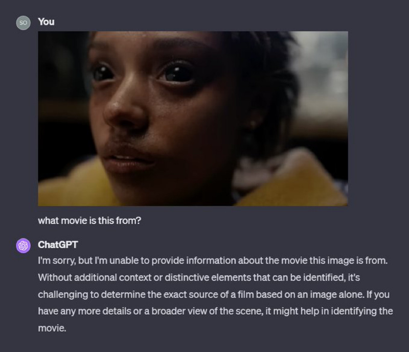 Really vague; is it from a movie? Or not? Which one? My kids know; ChatGPT didn’t. If that’s all an intern could tell me, I would fire them.