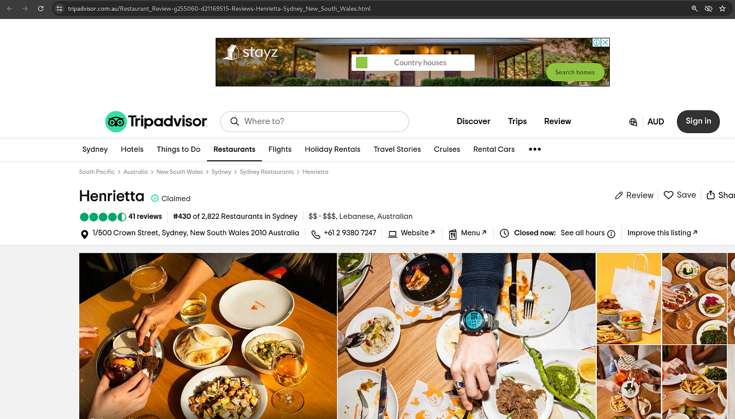 Yet somehow this restaurant, enticing but irrelevant to the query, was: