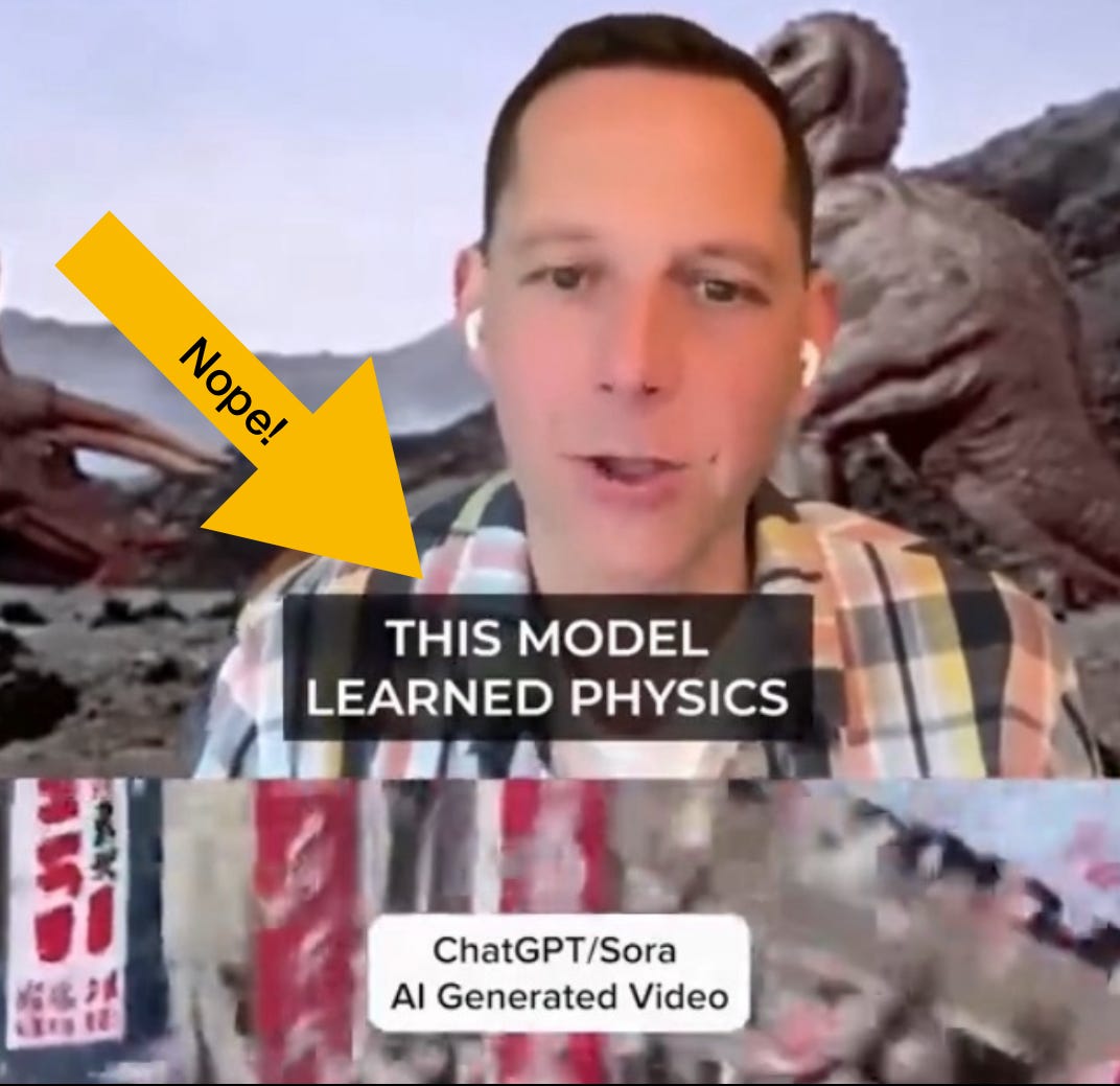 I disagree. Sora has not learned physics, and is not a reliable guide to how the world works. It is at best a semi-reliable guide to how the world looks.