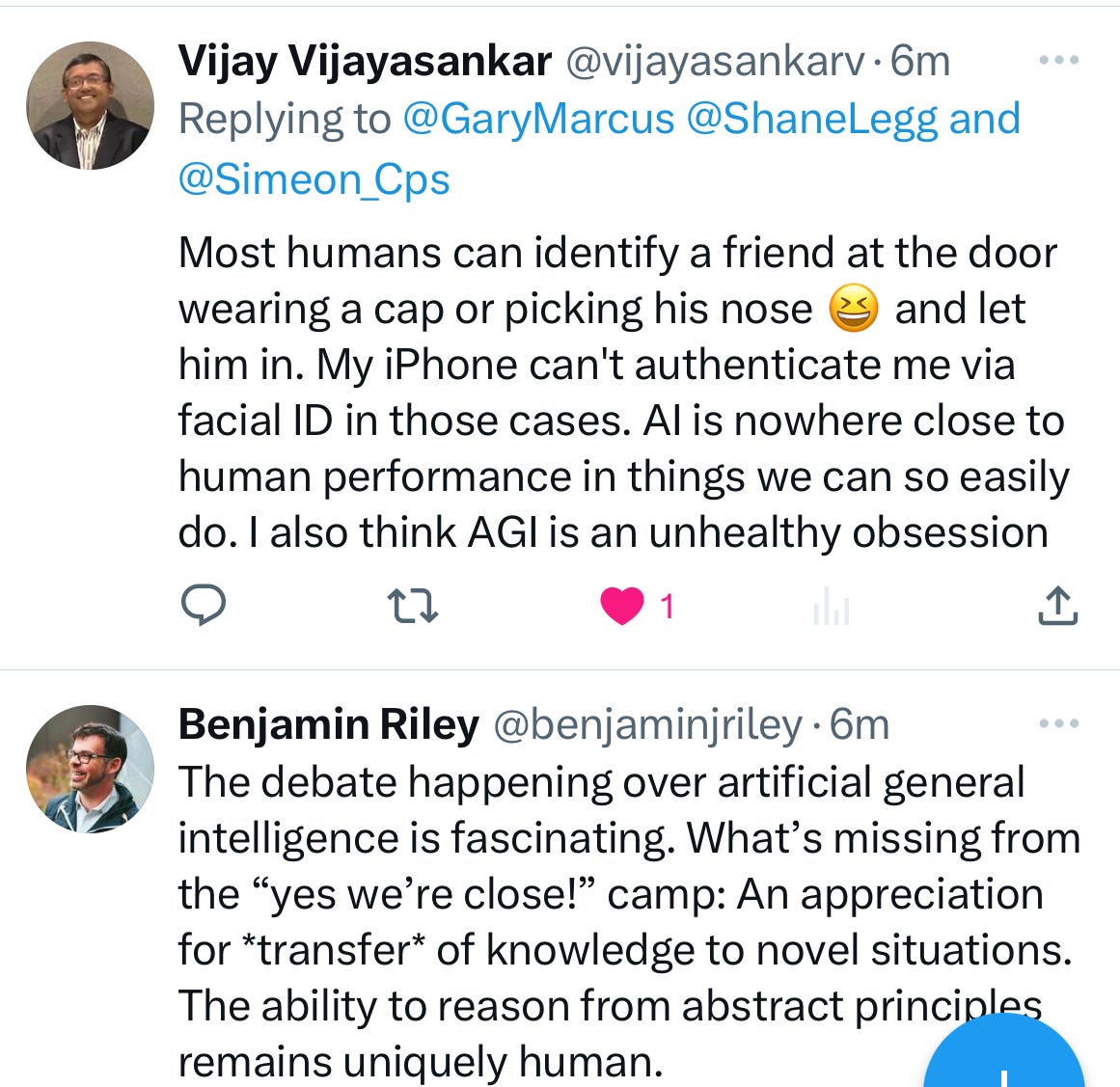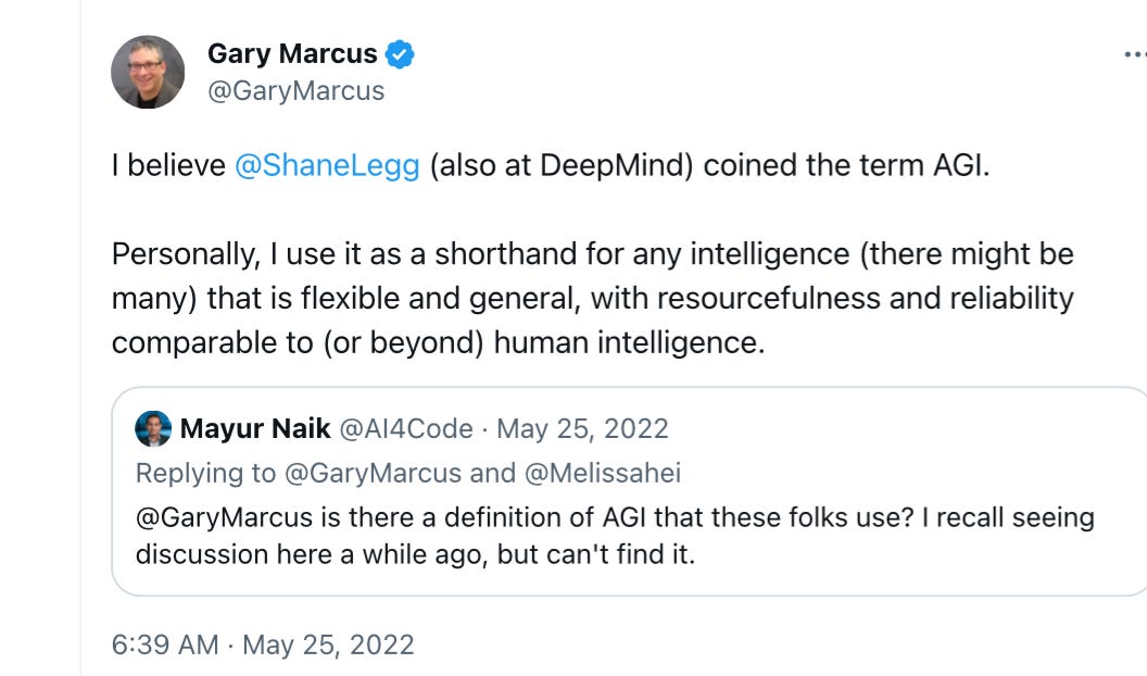 The most interesting thing I read yesterday was from Shane Legg, one of the founders of DeepMind, on the social media network formerly known as Twitter, arguing that Artificial General Intelligence (AGI)—a term that he helped coin—was imminent.