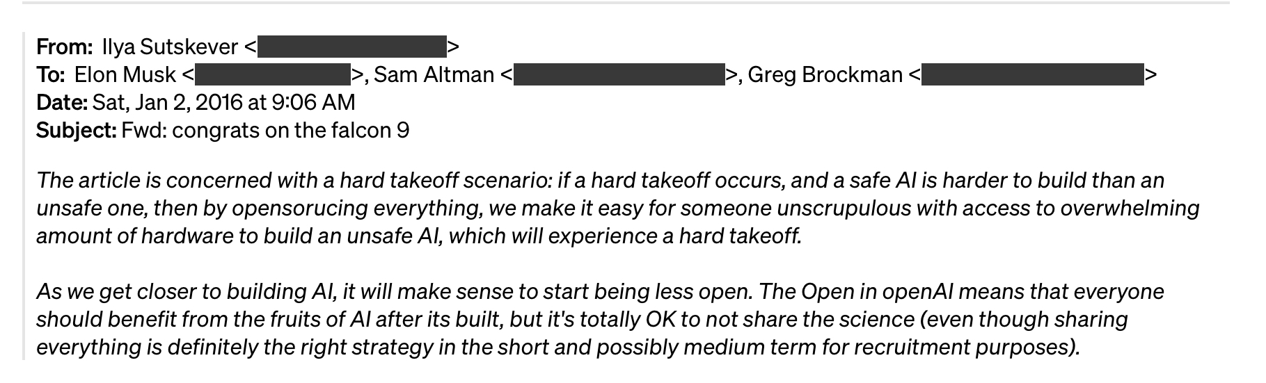 But seen from another perspective, releasing that email was a massive fuckup—because it shows decisively that OpenAI knew for years that they had no intention of being as open as their name or public statements suggested.
