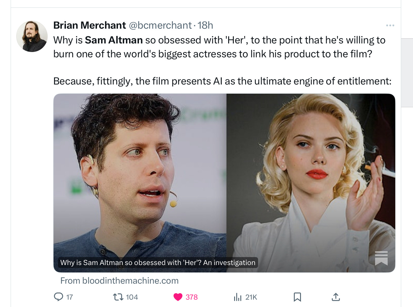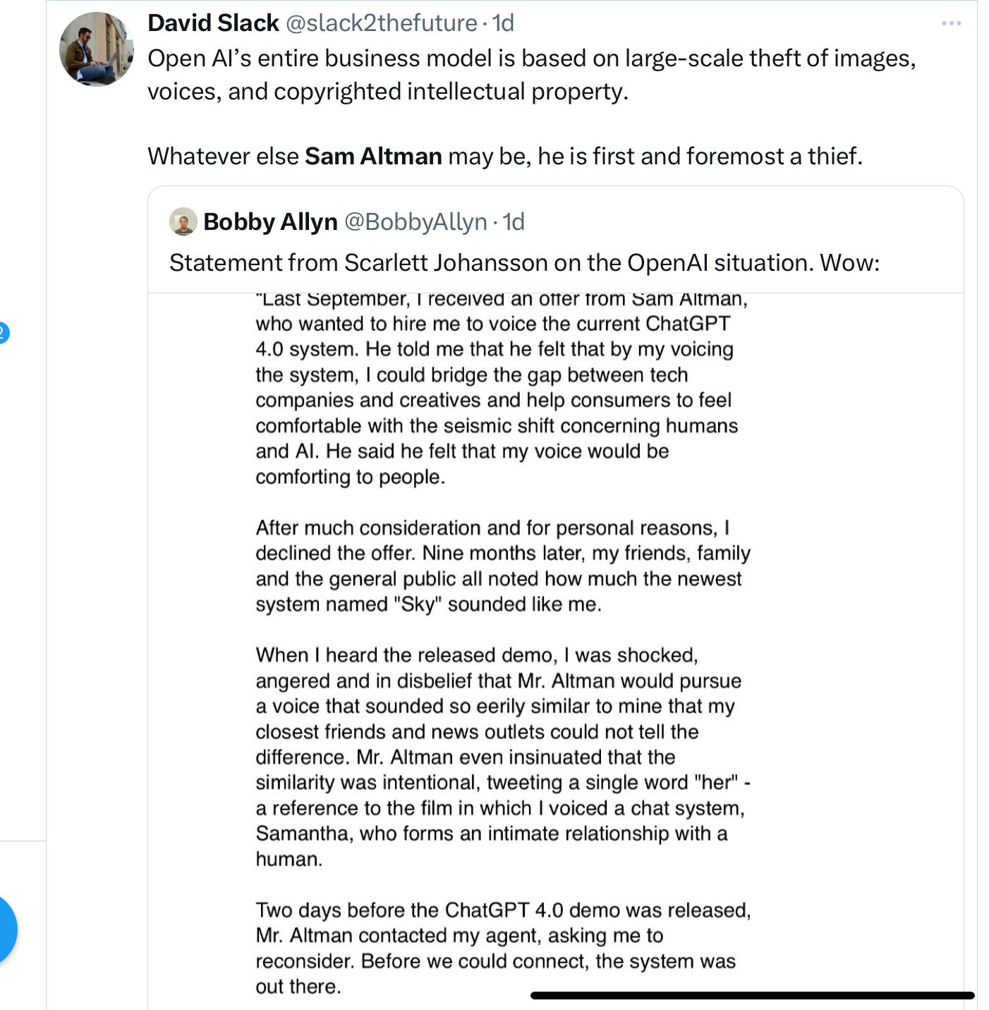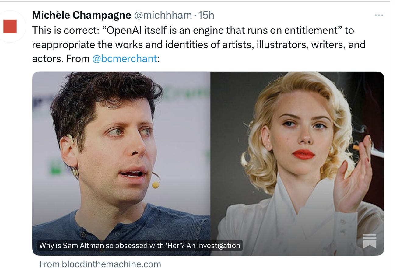 I am so proud of Scarlett Jo for taking action and standing up!! The technologist have run amok on the copyright and now the human trademark. However, the rank n file do not realize what is taking place. I do not believe that individuals can understand what is taking place to the human masses. We must stand up for our rights. #humanistheproduct