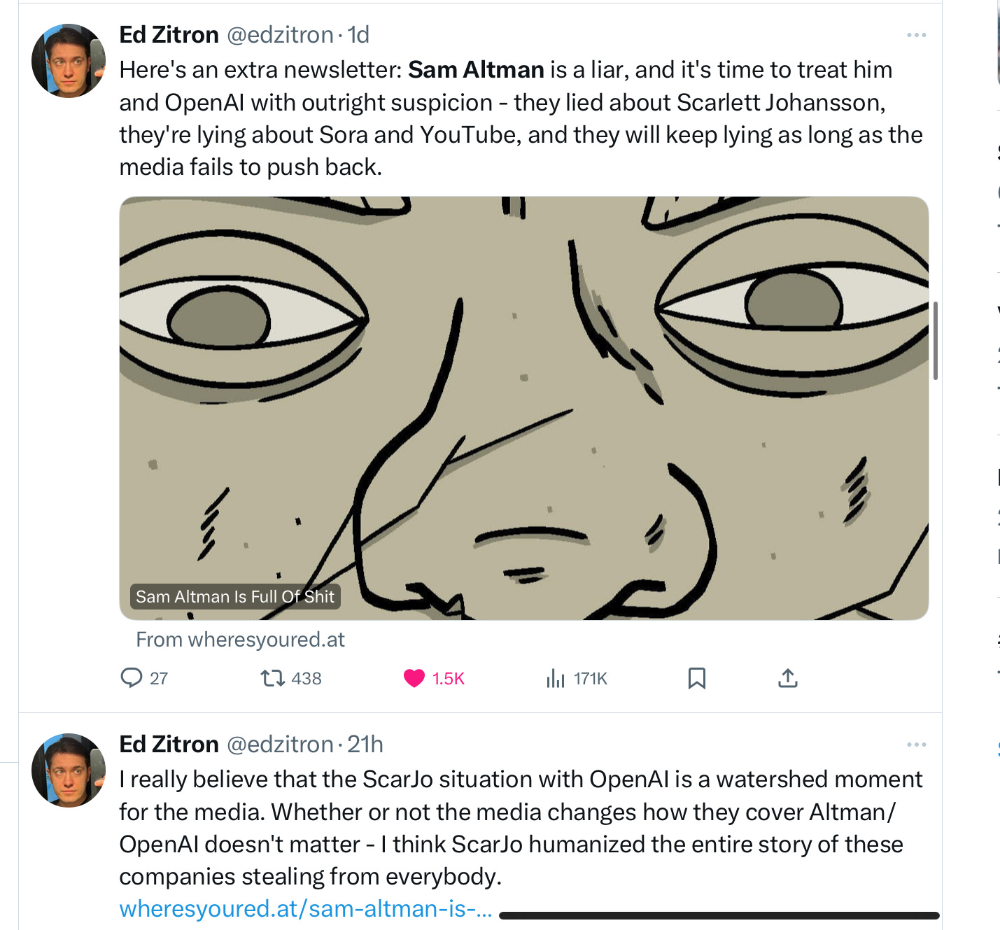 Sam Altman is trending and virtually every comment is trashing him.